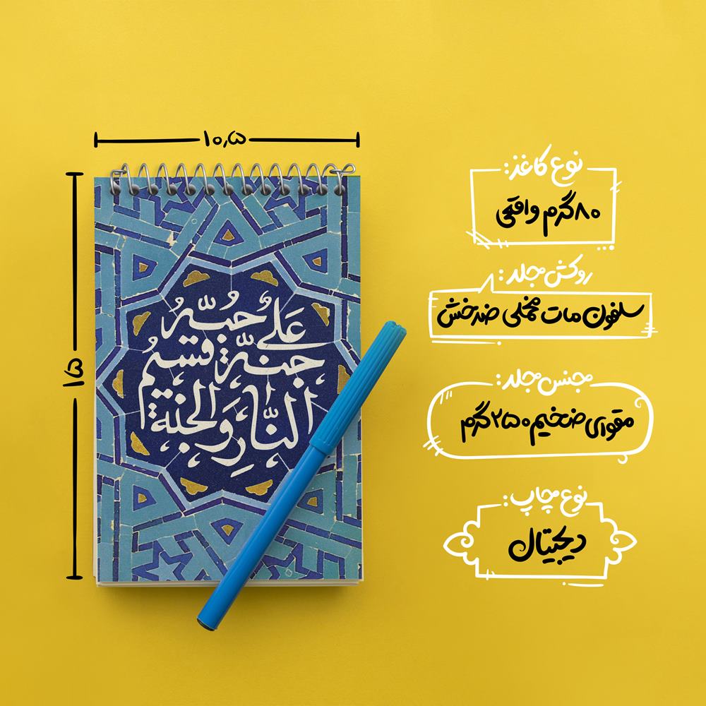 برند خندالو در زمینه تولید انواع دفاتر فانتزی و تحصیلی فعالیت میکند که به دلیل جذابیت ظاهری و طرح های متنوع طرفداران زیادی دارد. دفتر یادداشت خندالو طرح عید غدیر محصولی مناسب برای همه عاشقان لوازم التحریر است و همچنین همه کسانی که بنا به موقعیت تحصیل یا شغلشان با دفتر و نوشت افزار زیاد سر و کار دارند. در تولید دفتر یادداشت خندالو طرح عید غدیر از نوع صحافی فنر مارپیچ استفاده شده که در این نوع صحافی برگه‌ها به راحتی چرخیده و یا بیرون آورده می شوند.