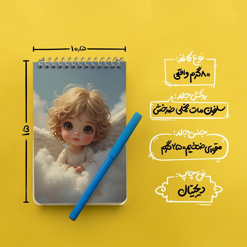 برند خندالو در زمینه تولید انواع دفاتر فانتزی و تحصیلی فعالیت میکند که به دلیل جذابیت ظاهری و طرح های متنوع طرفداران زیادی دارد. دفتر یادداشت خندالو طرح فرشته ی کیوت محصولی مناسب برای همه عاشقان لوازم التحریر است و همچنین همه کسانی که بنا به موقعیت تحصیل یا شغلشان با دفتر و نوشت افزار زیاد سر و کار دارند. در تولید دفتر یادداشت خندالو طرح فرشته ی کیوت از نوع صحافی فنر مارپیچ استفاده شده که در این نوع صحافی برگه‌ها به راحتی چرخیده و یا بیرون آورده می شوند.