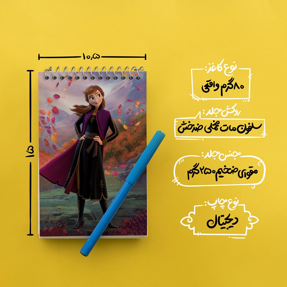 برند خندالو در زمینه تولید انواع دفاتر فانتزی و تحصیلی فعالیت میکند که به دلیل جذابیت ظاهری و طرح های متنوع طرفداران زیادی دارد. دفتر یادداشت خندالو طرح فروزن السا و آنا محصولی مناسب برای همه عاشقان لوازم التحریر است و همچنین همه کسانی که بنا به موقعیت تحصیل یا شغلشان با دفتر و نوشت افزار زیاد سر و کار دارند. در تولید دفتر یادداشت خندالو طرح فروزن السا و آنا از نوع صحافی فنر مارپیچ استفاده شده که در این نوع صحافی برگه‌ها به راحتی چرخیده و یا بیرون آورده می شوند.