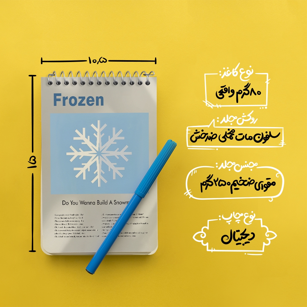 برند خندالو در زمینه تولید انواع دفاتر فانتزی و تحصیلی فعالیت میکند که به دلیل جذابیت ظاهری و طرح های متنوع طرفداران زیادی دارد. دفتر یادداشت خندالو طرح فروزن (Frozen) محصولی مناسب برای همه عاشقان لوازم التحریر است و همچنین همه کسانی که بنا به موقعیت تحصیل یا شغلشان با دفتر و نوشت افزار زیاد سر و کار دارند. در تولید دفتر یادداشت خندالو طرح فروزن (Frozen) از نوع صحافی فنر مارپیچ استفاده شده که در این نوع صحافی برگهها به راحتی چرخیده و یا بیرون آورده می شوند. دفتر های خندالو دارای جلد انعطاف پذیر از جنس مقوای گلاسه 250 گرم با روکش سلفون مات مخملی است که به شما امکان میدهد از دفتر خود بدون اینکه نگرانی از شکستن یا خراب شدن جلد را داشته باشید استفاده کنید و همچنین در این دفاتر از کاغذ 80 گرم با کیفیت استفاده شده که باعث میشود هنگام نوشتن به خوبی جوهر قلم بر روی صفحه نشسته و از خط خوردگیها جلوگیری کند. دفتر یادداشت خندالو با جنس و دوام مناسب، برگه های کاملاً سفید و خطوط طوسی دقیق را داراست که انسان را به نوشتن منظم و زیبا ترغیب میکند. طراحی کاملاً مناسب این دفاتر، به همراه کیفیت بالا، از آن یک محصول مورد علاقه و قابل اعتماد برای همه مقاطع تحصیلی میسازد. دفتر یادداشت خندالو طرح فروزن (Frozen) انتخابی هوشمندانه و مناسب برای افرادی است که به دنبال دفتری با کیفیت و کاربرد عالی هستند. این دفتر، همراه خوبی برای شما در تمام مراحل تحصیل و کار خواهد بود و تجربهای لذتبخش از نوشتن و آموختن را به شما هدیه میدهد.