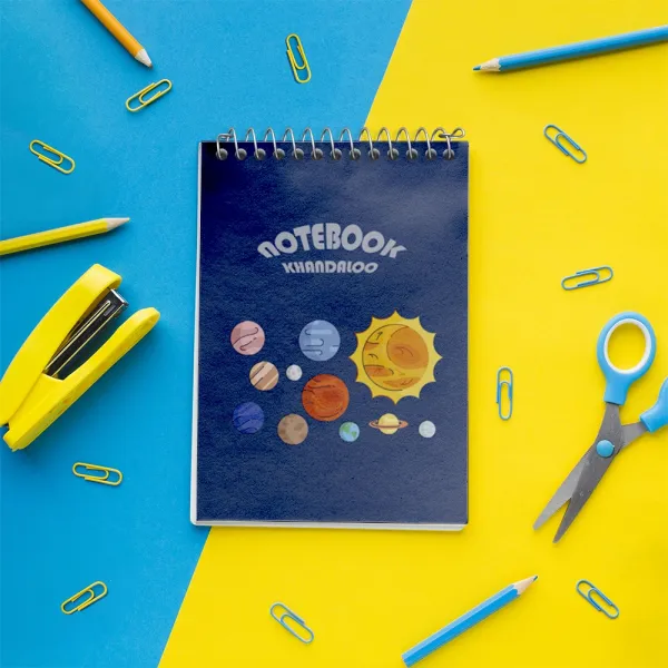 برند خندالو در زمینه تولید انواع دفاتر فانتزی و تحصیلی فعالیت میکند که به دلیل جذابیت ظاهری و طرح های متنوع طرفداران زیادی دارد. دفتر یادداشت خندالو طرح فضایی محصولی مناسب برای همه عاشقان لوازم التحریر است و همچنین همه کسانی که بنا به موقعیت تحصیل یا شغلشان با دفتر و نوشت افزار زیاد سر و کار دارند. در تولید دفتر یادداشت خندالو طرح فضایی از نوع صحافی فنر مارپیچ استفاده شده که در این نوع صحافی برگه‌ها به راحتی چرخیده و یا بیرون آورده می شوند.