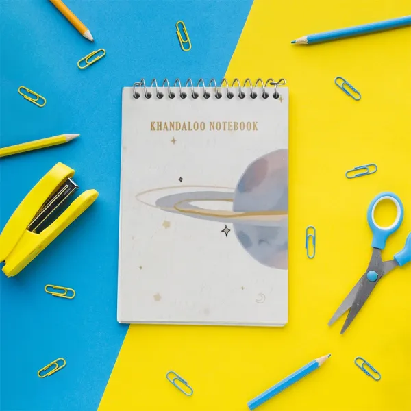 برند خندالو در زمینه تولید انواع دفاتر فانتزی و تحصیلی فعالیت میکند که به دلیل جذابیت ظاهری و طرح های متنوع طرفداران زیادی دارد. دفتر یادداشت خندالو طرح فضایی محصولی مناسب برای همه عاشقان لوازم التحریر است و همچنین همه کسانی که بنا به موقعیت تحصیل یا شغلشان با دفتر و نوشت افزار زیاد سر و کار دارند. در تولید دفتر یادداشت خندالو طرح فضایی از نوع صحافی فنر مارپیچ استفاده شده که در این نوع صحافی برگه‌ها به راحتی چرخیده و یا بیرون آورده می شوند.