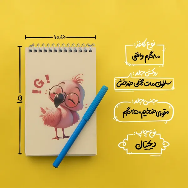 برند خندالو در زمینه تولید انواع دفاتر فانتزی و تحصیلی فعالیت میکند که به دلیل جذابیت ظاهری و طرح های متنوع طرفداران زیادی دارد. دفتر یادداشت خندالو طرح فلامینگو بامزه محصولی مناسب برای همه عاشقان لوازم التحریر است و همچنین همه کسانی که بنا به موقعیت تحصیل یا شغلشان با دفتر و نوشت افزار زیاد سر و کار دارند. در تولید دفتر یادداشت خندالو طرح فلامینگو بامزه از نوع صحافی فنر مارپیچ استفاده شده که در این نوع صحافی برگهها به راحتی چرخیده و یا بیرون آورده می شوند. دفتر های خندالو دارای جلد انعطاف پذیر از جنس مقوای گلاسه 250 گرم با روکش سلفون مات مخملی است که به شما امکان میدهد از دفتر خود بدون اینکه نگرانی از شکستن یا خراب شدن جلد را داشته باشید استفاده کنید و همچنین در این دفاتر از کاغذ 80 گرم با کیفیت استفاده شده که باعث میشود هنگام نوشتن به خوبی جوهر قلم بر روی صفحه نشسته و از خط خوردگیها جلوگیری کند. دفتر یادداشت خندالو با جنس و دوام مناسب، برگه های کاملاً سفید و خطوط طوسی دقیق را داراست که انسان را به نوشتن منظم و زیبا ترغیب میکند. طراحی کاملاً مناسب این دفاتر، به همراه کیفیت بالا، از آن یک محصول مورد علاقه و قابل اعتماد برای همه مقاطع تحصیلی میسازد. دفتر یادداشت خندالو طرح فلامینگو بامزه انتخابی هوشمندانه و مناسب برای افرادی است که به دنبال دفتری با کیفیت و کاربرد عالی هستند. این دفتر، همراه خوبی برای شما در تمام مراحل تحصیل و کار خواهد بود و تجربهای لذتبخش از نوشتن و آموختن را به شما هدیه میدهد.