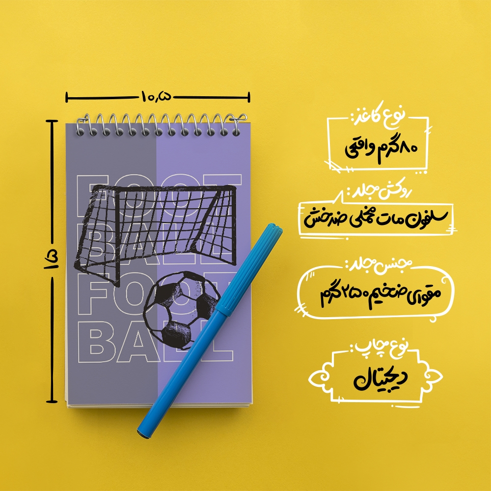 برند خندالو در زمینه تولید انواع دفاتر فانتزی و تحصیلی فعالیت میکند که به دلیل جذابیت ظاهری و طرح های متنوع طرفداران زیادی دارد. دفتر یادداشت خندالو طرح فوتبال محصولی مناسب برای همه عاشقان لوازم التحریر است و همچنین همه کسانی که بنا به موقعیت تحصیل یا شغلشان با دفتر و نوشت افزار زیاد سر و کار دارند. در تولید دفتر یادداشت خندالو طرح فوتبال از نوع صحافی فنر مارپیچ استفاده شده که در این نوع صحافی برگه‌ها به راحتی چرخیده و یا بیرون آورده می شوند.