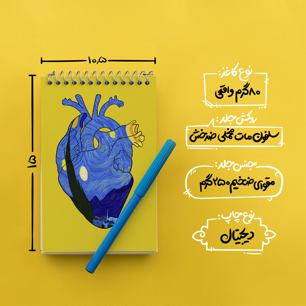 برند خندالو در زمینه تولید انواع دفاتر فانتزی و تحصیلی فعالیت میکند که به دلیل جذابیت ظاهری و طرح های متنوع طرفداران زیادی دارد. دفتر یادداشت خندالو طرح قلب ونسان ونگوگ محصولی مناسب برای همه عاشقان لوازم التحریر است و همچنین همه کسانی که بنا به موقعیت تحصیل یا شغلشان با دفتر و نوشت افزار زیاد سر و کار دارند. در تولید دفتر یادداشت خندالو طرح قلب ونسان ونگوگ از نوع صحافی فنر مارپیچ استفاده شده که در این نوع صحافی برگهها به راحتی چرخیده و یا بیرون آورده می شوند. دفتر های خندالو دارای جلد انعطاف پذیر از جنس مقوای گلاسه 250 گرم با روکش سلفون مات مخملی است که به شما امکان میدهد از دفتر خود بدون اینکه نگرانی از شکستن یا خراب شدن جلد را داشته باشید استفاده کنید و همچنین در این دفاتر از کاغذ 80 گرم با کیفیت استفاده شده که باعث میشود هنگام نوشتن به خوبی جوهر قلم بر روی صفحه نشسته و از خط خوردگیها جلوگیری کند. دفتر یادداشت خندالو با جنس و دوام مناسب، برگه های کاملاً سفید و خطوط طوسی دقیق را داراست که انسان را به نوشتن منظم و زیبا ترغیب میکند. طراحی کاملاً مناسب این دفاتر، به همراه کیفیت بالا، از آن یک محصول مورد علاقه و قابل اعتماد برای همه مقاطع تحصیلی میسازد. دفتر یادداشت خندالو طرح قلب ونسان ونگوگ انتخابی هوشمندانه و مناسب برای افرادی است که به دنبال دفتری با کیفیت و کاربرد عالی هستند. این دفتر، همراه خوبی برای شما در تمام مراحل تحصیل و کار خواهد بود و تجربهای لذتبخش از نوشتن و آموختن را به شما هدیه میدهد.