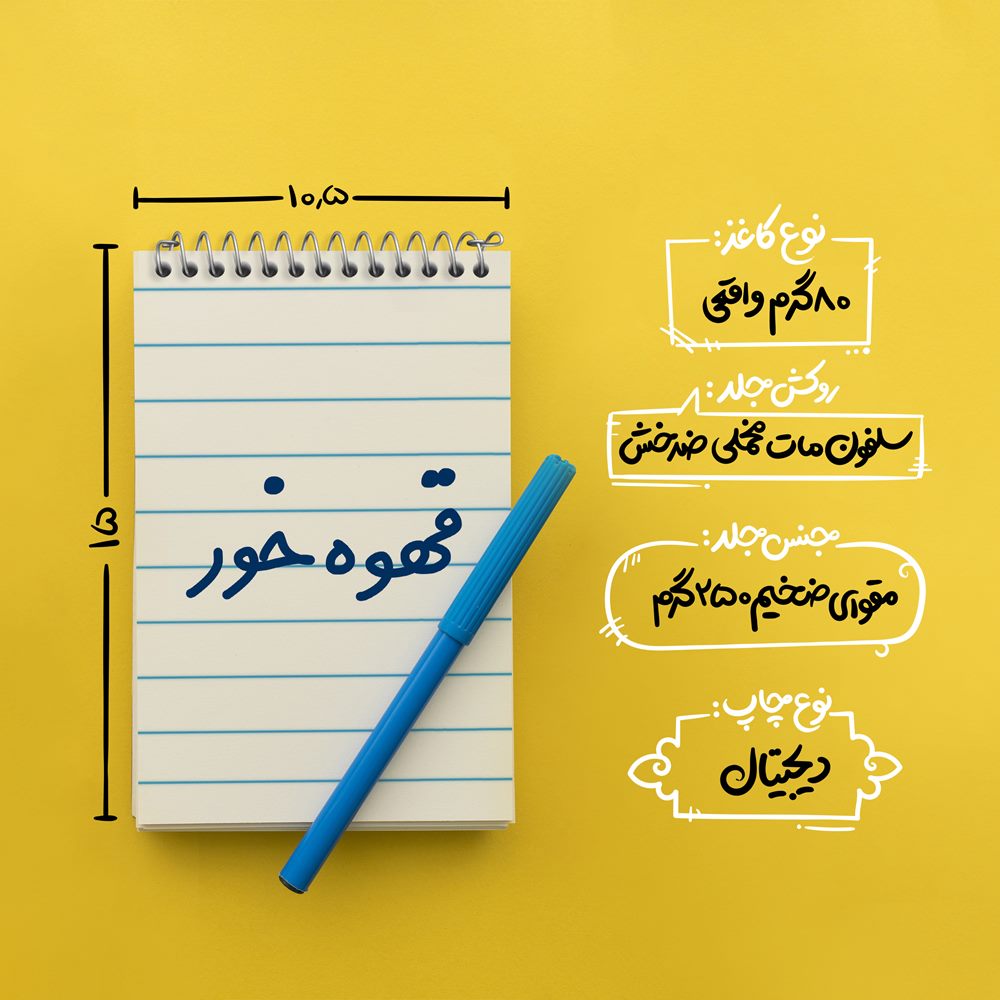 برند خندالو در زمینه تولید انواع دفاتر فانتزی و تحصیلی فعالیت میکند که به دلیل جذابیت ظاهری و طرح های متنوع طرفداران زیادی دارد. دفتر یادداشت خندالو طرح قهوه خور محصولی مناسب برای همه عاشقان لوازم التحریر است و همچنین همه کسانی که بنا به موقعیت تحصیل یا شغلشان با دفتر و نوشت افزار زیاد سر و کار دارند. در تولید دفتر یادداشت خندالو طرح قهوه خور از نوع صحافی فنر مارپیچ استفاده شده که در این نوع صحافی برگهها به راحتی چرخیده و یا بیرون آورده می شوند. دفتر های خندالو دارای جلد انعطاف پذیر از جنس مقوای گلاسه 250 گرم با روکش سلفون مات مخملی است که به شما امکان میدهد از دفتر خود بدون اینکه نگرانی از شکستن یا خراب شدن جلد را داشته باشید استفاده کنید و همچنین در این دفاتر از کاغذ 80 گرم با کیفیت استفاده شده که باعث میشود هنگام نوشتن به خوبی جوهر قلم بر روی صفحه نشسته و از خط خوردگیها جلوگیری کند. دفتر یادداشت خندالو با جنس و دوام مناسب، برگه های کاملاً سفید و خطوط طوسی دقیق را داراست که انسان را به نوشتن منظم و زیبا ترغیب میکند. طراحی کاملاً مناسب این دفاتر، به همراه کیفیت بالا، از آن یک محصول مورد علاقه و قابل اعتماد برای همه مقاطع تحصیلی میسازد. دفتر یادداشت خندالو طرح قهوه خور انتخابی هوشمندانه و مناسب برای افرادی است که به دنبال دفتری با کیفیت و کاربرد عالی هستند. این دفتر، همراه خوبی برای شما در تمام مراحل تحصیل و کار خواهد بود و تجربهای لذتبخش از نوشتن و آموختن را به شما هدیه میدهد.
