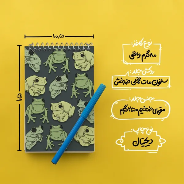 برند خندالو در زمینه تولید انواع دفاتر فانتزی و تحصیلی فعالیت میکند که به دلیل جذابیت ظاهری و طرح های متنوع طرفداران زیادی دارد. دفتر یادداشت خندالو طرح قورباغه (Frog) محصولی مناسب برای همه عاشقان لوازم التحریر است و همچنین همه کسانی که بنا به موقعیت تحصیل یا شغلشان با دفتر و نوشت افزار زیاد سر و کار دارند. در تولید دفتر یادداشت خندالو طرح قورباغه (Frog) از نوع صحافی فنر مارپیچ استفاده شده که در این نوع صحافی برگهها به راحتی چرخیده و یا بیرون آورده می شوند. دفتر های خندالو دارای جلد انعطاف پذیر از جنس مقوای گلاسه 250 گرم با روکش سلفون مات مخملی است که به شما امکان میدهد از دفتر خود بدون اینکه نگرانی از شکستن یا خراب شدن جلد را داشته باشید استفاده کنید و همچنین در این دفاتر از کاغذ 80 گرم با کیفیت استفاده شده که باعث میشود هنگام نوشتن به خوبی جوهر قلم بر روی صفحه نشسته و از خط خوردگیها جلوگیری کند. دفتر یادداشت خندالو با جنس و دوام مناسب، برگه های کاملاً سفید و خطوط طوسی دقیق را داراست که انسان را به نوشتن منظم و زیبا ترغیب میکند. طراحی کاملاً مناسب این دفاتر، به همراه کیفیت بالا، از آن یک محصول مورد علاقه و قابل اعتماد برای همه مقاطع تحصیلی میسازد. دفتر یادداشت خندالو طرح قورباغه (Frog) انتخابی هوشمندانه و مناسب برای افرادی است که به دنبال دفتری با کیفیت و کاربرد عالی هستند. این دفتر، همراه خوبی برای شما در تمام مراحل تحصیل و کار خواهد بود و تجربهای لذتبخش از نوشتن و آموختن را به شما هدیه میدهد.