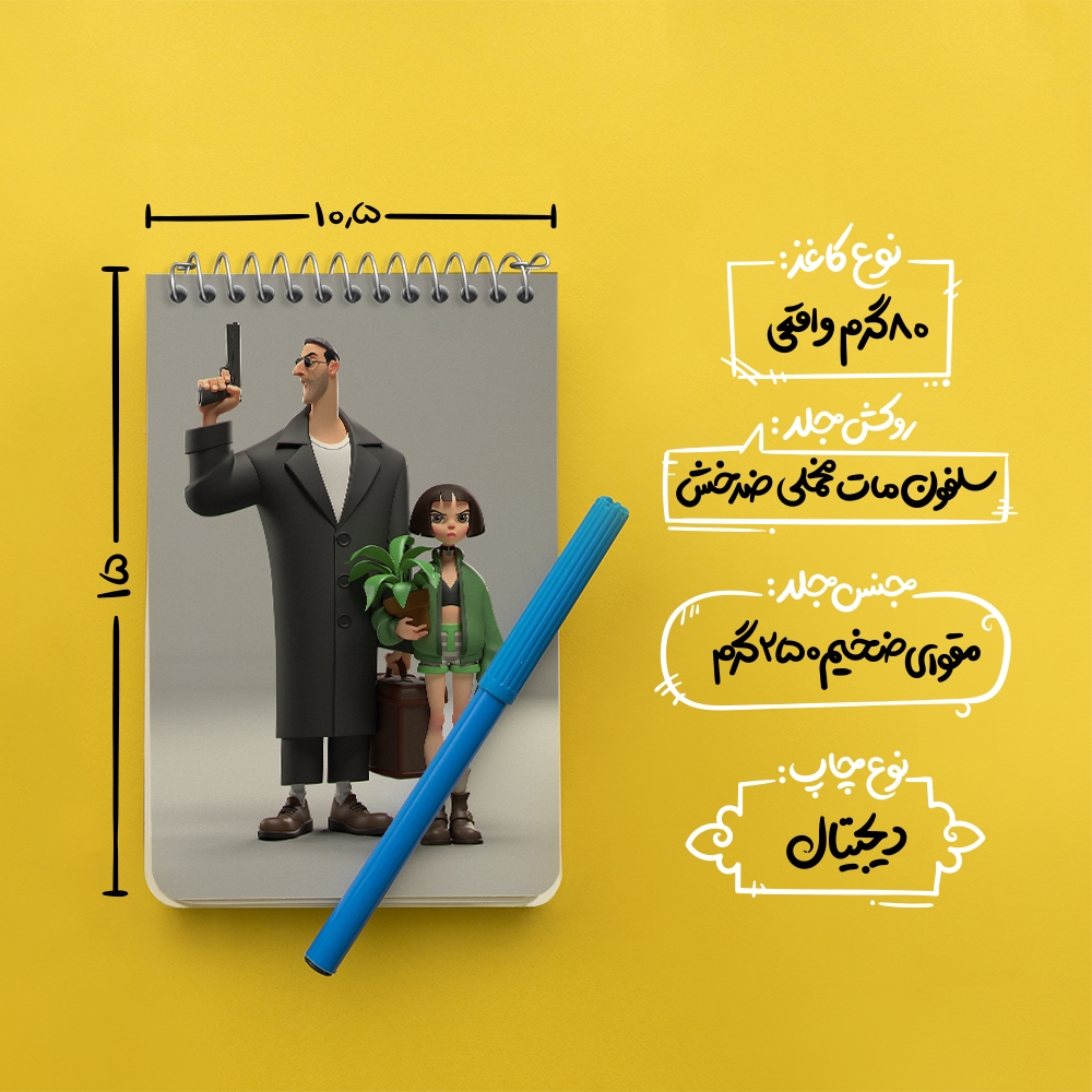 برند خندالو در زمینه تولید انواع دفاتر فانتزی و تحصیلی فعالیت میکند که به دلیل جذابیت ظاهری و طرح های متنوع طرفداران زیادی دارد. دفتر یادداشت خندالو طرح لئون و ماتیلدا محصولی مناسب برای همه عاشقان لوازم التحریر است و همچنین همه کسانی که بنا به موقعیت تحصیل یا شغلشان با دفتر و نوشت افزار زیاد سر و کار دارند. در تولید دفتر یادداشت خندالو طرح لئون و ماتیلدا از نوع صحافی فنر مارپیچ استفاده شده که در این نوع صحافی برگه‌ها به راحتی چرخیده و یا بیرون آورده می شوند.