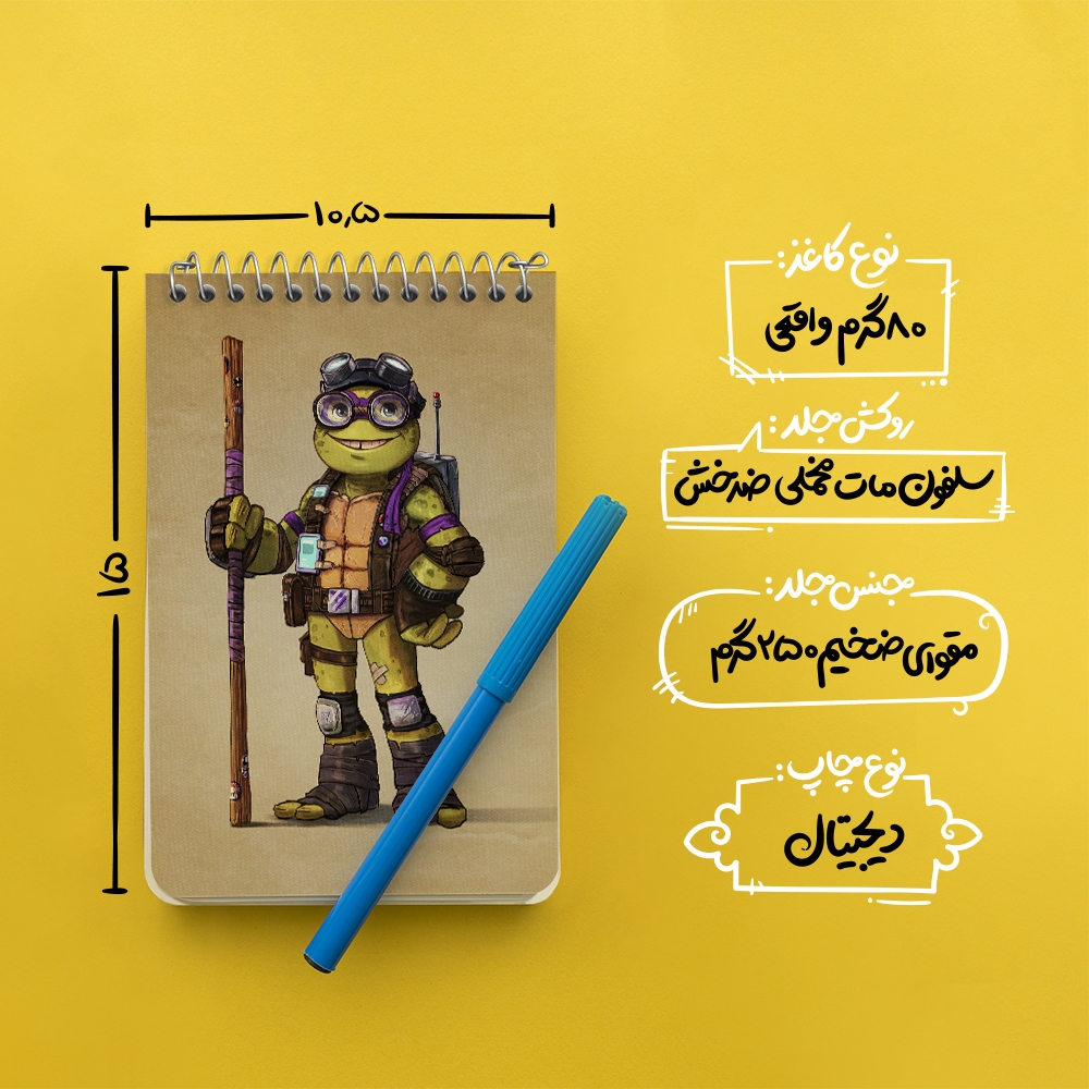 برند خندالو در زمینه تولید انواع دفاتر فانتزی و تحصیلی فعالیت میکند که به دلیل جذابیت ظاهری و طرح های متنوع طرفداران زیادی دارد. دفتر یادداشت خندالو طرح لاکپشت های نینجا محصولی مناسب برای همه عاشقان لوازم التحریر است و همچنین همه کسانی که بنا به موقعیت تحصیل یا شغلشان با دفتر و نوشت افزار زیاد سر و کار دارند. در تولید دفتر یادداشت خندالو طرح لاکپشت های نینجا از نوع صحافی فنر مارپیچ استفاده شده که در این نوع صحافی برگه‌ها به راحتی چرخیده و یا بیرون آورده می شوند.