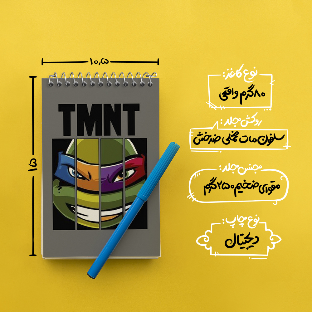 برند خندالو در زمینه تولید انواع دفاتر فانتزی و تحصیلی فعالیت میکند که به دلیل جذابیت ظاهری و طرح های متنوع طرفداران زیادی دارد. دفتر یادداشت خندالو طرح لاکپشت های نینجا محصولی مناسب برای همه عاشقان لوازم التحریر است و همچنین همه کسانی که بنا به موقعیت تحصیل یا شغلشان با دفتر و نوشت افزار زیاد سر و کار دارند. در تولید دفتر یادداشت خندالو طرح لاکپشت های نینجا از نوع صحافی فنر مارپیچ استفاده شده که در این نوع صحافی برگه‌ها به راحتی چرخیده و یا بیرون آورده می شوند.