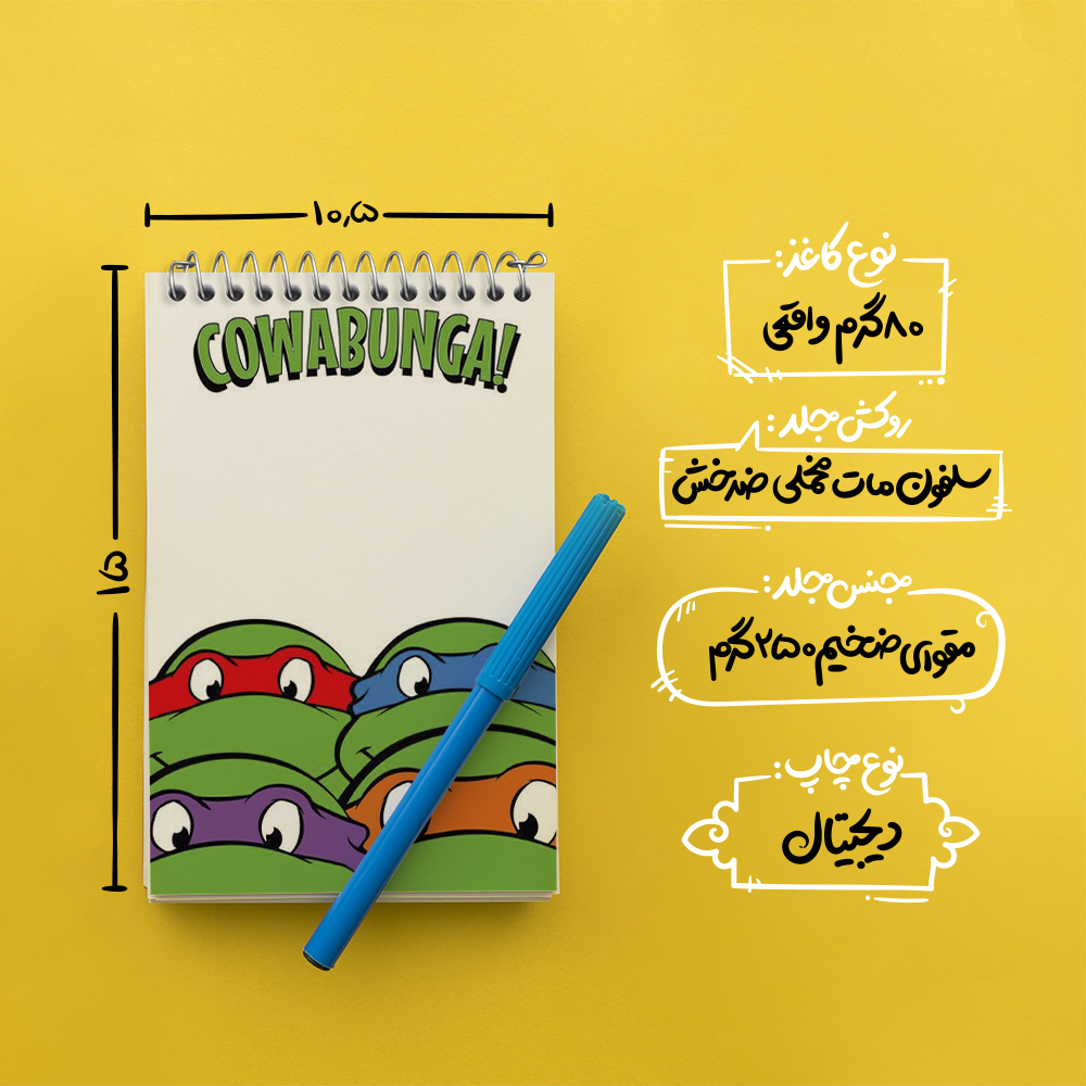 برند خندالو در زمینه تولید انواع دفاتر فانتزی و تحصیلی فعالیت میکند که به دلیل جذابیت ظاهری و طرح های متنوع طرفداران زیادی دارد. دفتر یادداشت خندالو طرح لاکپشت های نینجا محصولی مناسب برای همه عاشقان لوازم التحریر است و همچنین همه کسانی که بنا به موقعیت تحصیل یا شغلشان با دفتر و نوشت افزار زیاد سر و کار دارند. در تولید دفتر یادداشت خندالو طرح لاکپشت های نینجا از نوع صحافی فنر مارپیچ استفاده شده که در این نوع صحافی برگه‌ها به راحتی چرخیده و یا بیرون آورده می شوند.