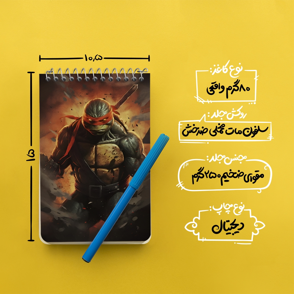 برند خندالو در زمینه تولید انواع دفاتر فانتزی و تحصیلی فعالیت میکند که به دلیل جذابیت ظاهری و طرح های متنوع طرفداران زیادی دارد. دفتر یادداشت خندالو طرح لاکپشت های نینجا محصولی مناسب برای همه عاشقان لوازم التحریر است و همچنین همه کسانی که بنا به موقعیت تحصیل یا شغلشان با دفتر و نوشت افزار زیاد سر و کار دارند. در تولید دفتر یادداشت خندالو طرح لاکپشت های نینجا از نوع صحافی فنر مارپیچ استفاده شده که در این نوع صحافی برگه‌ها به راحتی چرخیده و یا بیرون آورده می شوند.