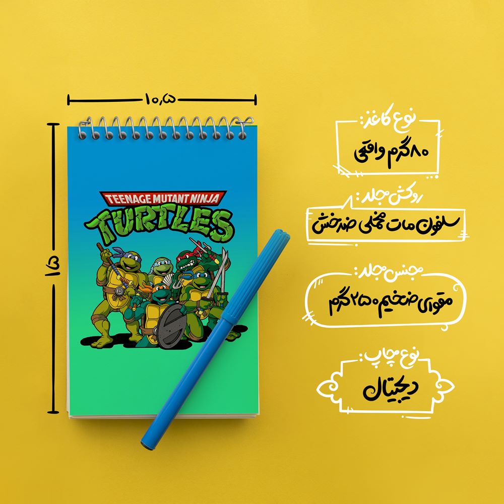 برند خندالو در زمینه تولید انواع دفاتر فانتزی و تحصیلی فعالیت میکند که به دلیل جذابیت ظاهری و طرح های متنوع طرفداران زیادی دارد. دفتر یادداشت خندالو طرح لاکپشت های نینجا محصولی مناسب برای همه عاشقان لوازم التحریر است و همچنین همه کسانی که بنا به موقعیت تحصیل یا شغلشان با دفتر و نوشت افزار زیاد سر و کار دارند. در تولید دفتر یادداشت خندالو طرح لاکپشت های نینجا از نوع صحافی فنر مارپیچ استفاده شده که در این نوع صحافی برگه‌ها به راحتی چرخیده و یا بیرون آورده می شوند.