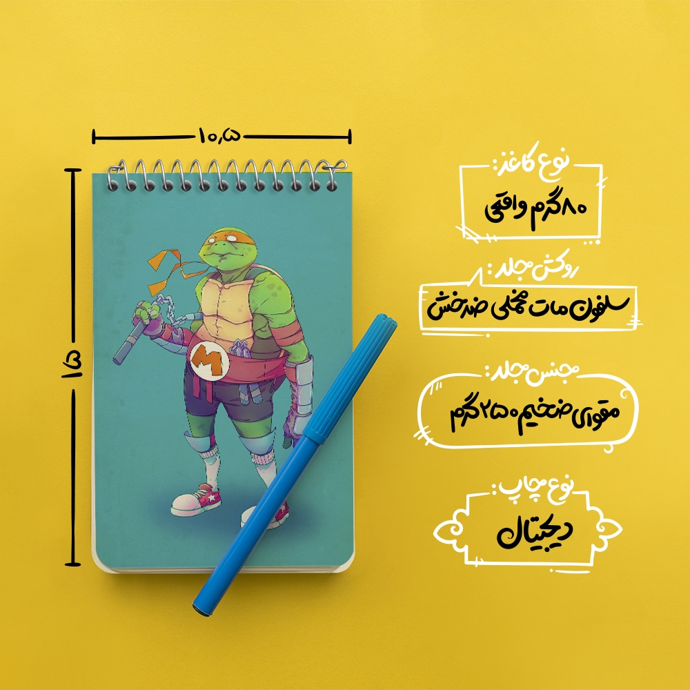 برند خندالو در زمینه تولید انواع دفاتر فانتزی و تحصیلی فعالیت میکند که به دلیل جذابیت ظاهری و طرح های متنوع طرفداران زیادی دارد. دفتر یادداشت خندالو طرح لاکپشت های نینجا محصولی مناسب برای همه عاشقان لوازم التحریر است و همچنین همه کسانی که بنا به موقعیت تحصیل یا شغلشان با دفتر و نوشت افزار زیاد سر و کار دارند. در تولید دفتر یادداشت خندالو طرح لاکپشت های نینجا از نوع صحافی فنر مارپیچ استفاده شده که در این نوع صحافی برگهها به راحتی چرخیده و یا بیرون آورده می شوند. دفتر های خندالو دارای جلد انعطاف پذیر از جنس مقوای گلاسه 250 گرم با روکش سلفون مات مخملی است که به شما امکان میدهد از دفتر خود بدون اینکه نگرانی از شکستن یا خراب شدن جلد را داشته باشید استفاده کنید و همچنین در این دفاتر از کاغذ 80 گرم با کیفیت استفاده شده که باعث میشود هنگام نوشتن به خوبی جوهر قلم بر روی صفحه نشسته و از خط خوردگیها جلوگیری کند. دفتر یادداشت خندالو با جنس و دوام مناسب، برگه های کاملاً سفید و خطوط طوسی دقیق را داراست که انسان را به نوشتن منظم و زیبا ترغیب میکند. طراحی کاملاً مناسب این دفاتر، به همراه کیفیت بالا، از آن یک محصول مورد علاقه و قابل اعتماد برای همه مقاطع تحصیلی میسازد. دفتر یادداشت خندالو طرح لاکپشت های نینجا انتخابی هوشمندانه و مناسب برای افرادی است که به دنبال دفتری با کیفیت و کاربرد عالی هستند. این دفتر، همراه خوبی برای شما در تمام مراحل تحصیل و کار خواهد بود و تجربهای لذتبخش از نوشتن و آموختن را به شما هدیه میدهد.