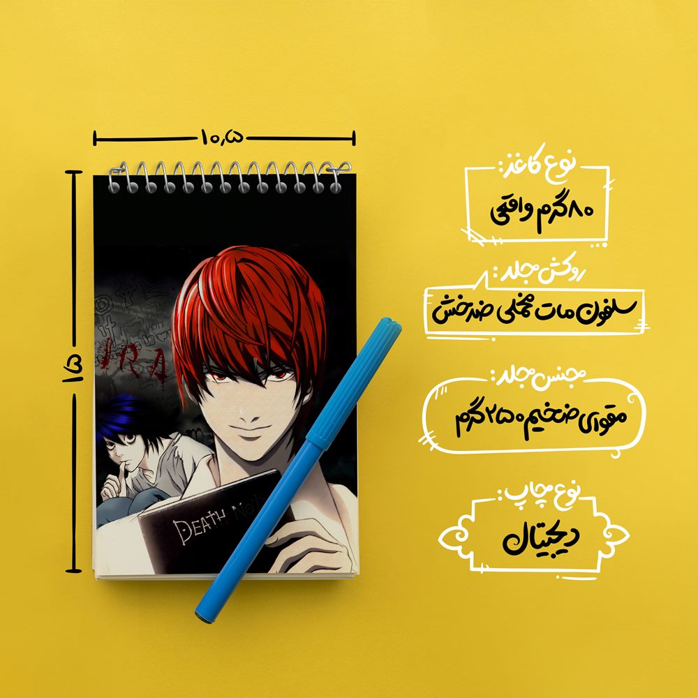 برند خندالو در زمینه تولید انواع دفاتر فانتزی و تحصیلی فعالیت میکند که به دلیل جذابیت ظاهری و طرح های متنوع طرفداران زیادی دارد. دفتر یادداشت خندالو طرح لایت و ال انیمه دفترچه مرگ Death Note محصولی مناسب برای همه عاشقان لوازم التحریر است و همچنین همه کسانی که بنا به موقعیت تحصیل یا شغلشان با دفتر و نوشت افزار زیاد سر و کار دارند. در تولید دفتر یادداشت خندالو طرح لایت و ال انیمه دفترچه مرگ Death Note از نوع صحافی فنر مارپیچ استفاده شده که در این نوع صحافی برگهها به راحتی چرخیده و یا بیرون آورده می شوند. دفتر های خندالو دارای جلد انعطاف پذیر از جنس مقوای گلاسه 250 گرم با روکش سلفون مات مخملی است که به شما امکان میدهد از دفتر خود بدون اینکه نگرانی از شکستن یا خراب شدن جلد را داشته باشید استفاده کنید و همچنین در این دفاتر از کاغذ 80 گرم با کیفیت استفاده شده که باعث میشود هنگام نوشتن به خوبی جوهر قلم بر روی صفحه نشسته و از خط خوردگیها جلوگیری کند. دفتر یادداشت خندالو با جنس و دوام مناسب، برگه های کاملاً سفید و خطوط طوسی دقیق را داراست که انسان را به نوشتن منظم و زیبا ترغیب میکند. طراحی کاملاً مناسب این دفاتر، به همراه کیفیت بالا، از آن یک محصول مورد علاقه و قابل اعتماد برای همه مقاطع تحصیلی میسازد. دفتر یادداشت خندالو طرح لایت و ال انیمه دفترچه مرگ Death Note انتخابی هوشمندانه و مناسب برای افرادی است که به دنبال دفتری با کیفیت و کاربرد عالی هستند. این دفتر، همراه خوبی برای شما در تمام مراحل تحصیل و کار خواهد بود و تجربهای لذتبخش از نوشتن و آموختن را به شما هدیه میدهد.