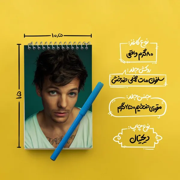 برند خندالو در زمینه تولید انواع دفاتر فانتزی و تحصیلی فعالیت میکند که به دلیل جذابیت ظاهری و طرح های متنوع طرفداران زیادی دارد. دفتر یادداشت خندالو طرح لوئی تاملینسون گروه موسیقی وان دایرکشن One Direction محصولی مناسب برای همه عاشقان لوازم التحریر است و همچنین همه کسانی که بنا به موقعیت تحصیل یا شغلشان با دفتر و نوشت افزار زیاد سر و کار دارند. در تولید دفتر یادداشت خندالو طرح لوئی تاملینسون گروه موسیقی وان دایرکشن One Direction از نوع صحافی فنر مارپیچ استفاده شده که در این نوع صحافی برگه‌ها به راحتی چرخیده و یا بیرون آورده می شوند.