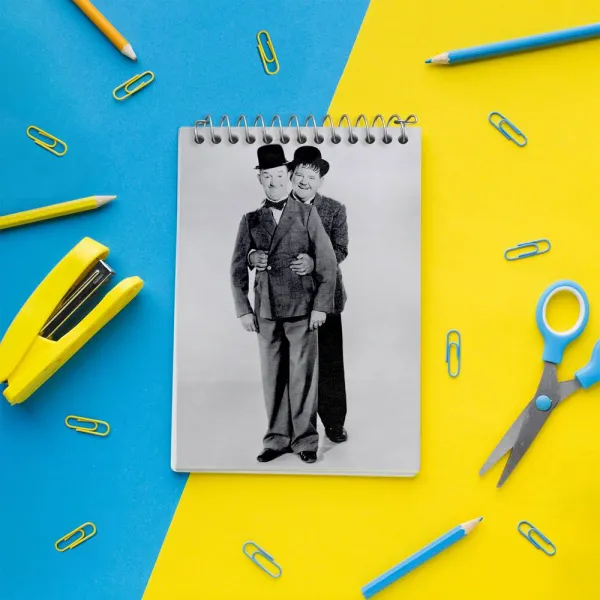 برند خندالو در زمینه تولید انواع دفاتر فانتزی و تحصیلی فعالیت میکند که به دلیل جذابیت ظاهری و طرح های متنوع طرفداران زیادی دارد. دفتر یادداشت خندالو طرح لورل و هاردی Laurel and Hardy محصولی مناسب برای همه عاشقان لوازم التحریر است و همچنین همه کسانی که بنا به موقعیت تحصیل یا شغلشان با دفتر و نوشت افزار زیاد سر و کار دارند. در تولید دفتر یادداشت خندالو طرح لورل و هاردی Laurel and Hardy از نوع صحافی فنر مارپیچ استفاده شده که در این نوع صحافی برگهها به راحتی چرخیده و یا بیرون آورده می شوند. دفتر های خندالو دارای جلد انعطاف پذیر از جنس مقوای گلاسه 250 گرم با روکش سلفون مات مخملی است که به شما امکان میدهد از دفتر خود بدون اینکه نگرانی از شکستن یا خراب شدن جلد را داشته باشید استفاده کنید و همچنین در این دفاتر از کاغذ 80 گرم با کیفیت استفاده شده که باعث میشود هنگام نوشتن به خوبی جوهر قلم بر روی صفحه نشسته و از خط خوردگیها جلوگیری کند. دفتر یادداشت خندالو با جنس و دوام مناسب، برگه های کاملاً سفید و خطوط طوسی دقیق را داراست که انسان را به نوشتن منظم و زیبا ترغیب میکند. طراحی کاملاً مناسب این دفاتر، به همراه کیفیت بالا، از آن یک محصول مورد علاقه و قابل اعتماد برای همه مقاطع تحصیلی میسازد. دفتر یادداشت خندالو طرح لورل و هاردی Laurel and Hardy انتخابی هوشمندانه و مناسب برای افرادی است که به دنبال دفتری با کیفیت و کاربرد عالی هستند. این دفتر، همراه خوبی برای شما در تمام مراحل تحصیل و کار خواهد بود و تجربهای لذتبخش از نوشتن و آموختن را به شما هدیه میدهد.