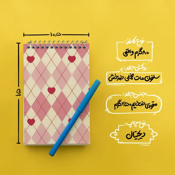 برند خندالو در زمینه تولید انواع دفاتر فانتزی و تحصیلی فعالیت میکند که به دلیل جذابیت ظاهری و طرح های متنوع طرفداران زیادی دارد. دفتر یادداشت خندالو طرح لوزی و قلب محصولی مناسب برای همه عاشقان لوازم التحریر است و همچنین همه کسانی که بنا به موقعیت تحصیل یا شغلشان با دفتر و نوشت افزار زیاد سر و کار دارند. در تولید دفتر یادداشت خندالو طرح لوزی و قلب از نوع صحافی فنر مارپیچ استفاده شده که در این نوع صحافی برگهها به راحتی چرخیده و یا بیرون آورده می شوند. دفتر های خندالو دارای جلد انعطاف پذیر از جنس مقوای گلاسه 250 گرم با روکش سلفون مات مخملی است که به شما امکان میدهد از دفتر خود بدون اینکه نگرانی از شکستن یا خراب شدن جلد را داشته باشید استفاده کنید و همچنین در این دفاتر از کاغذ 80 گرم با کیفیت استفاده شده که باعث میشود هنگام نوشتن به خوبی جوهر قلم بر روی صفحه نشسته و از خط خوردگیها جلوگیری کند. دفتر یادداشت خندالو با جنس و دوام مناسب، برگه های کاملاً سفید و خطوط طوسی دقیق را داراست که انسان را به نوشتن منظم و زیبا ترغیب میکند. طراحی کاملاً مناسب این دفاتر، به همراه کیفیت بالا، از آن یک محصول مورد علاقه و قابل اعتماد برای همه مقاطع تحصیلی میسازد. دفتر یادداشت خندالو طرح لوزی و قلب انتخابی هوشمندانه و مناسب برای افرادی است که به دنبال دفتری با کیفیت و کاربرد عالی هستند. این دفتر، همراه خوبی برای شما در تمام مراحل تحصیل و کار خواهد بود و تجربهای لذتبخش از نوشتن و آموختن را به شما هدیه میدهد.