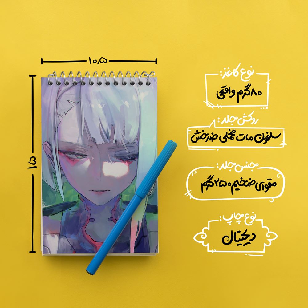 برند خندالو در زمینه تولید انواع دفاتر فانتزی و تحصیلی فعالیت میکند که به دلیل جذابیت ظاهری و طرح های متنوع طرفداران زیادی دارد. دفتر یادداشت خندالو طرح لوسی انیمه سایبرپانک محصولی مناسب برای همه عاشقان لوازم التحریر است و همچنین همه کسانی که بنا به موقعیت تحصیل یا شغلشان با دفتر و نوشت افزار زیاد سر و کار دارند. در تولید دفتر یادداشت خندالو طرح لوسی انیمه سایبرپانک از نوع صحافی فنر مارپیچ استفاده شده که در این نوع صحافی برگهها به راحتی چرخیده و یا بیرون آورده می شوند. دفتر های خندالو دارای جلد انعطاف پذیر از جنس مقوای گلاسه 250 گرم با روکش سلفون مات مخملی است که به شما امکان میدهد از دفتر خود بدون اینکه نگرانی از شکستن یا خراب شدن جلد را داشته باشید استفاده کنید و همچنین در این دفاتر از کاغذ 80 گرم با کیفیت استفاده شده که باعث میشود هنگام نوشتن به خوبی جوهر قلم بر روی صفحه نشسته و از خط خوردگیها جلوگیری کند. دفتر یادداشت خندالو با جنس و دوام مناسب، برگه های کاملاً سفید و خطوط طوسی دقیق را داراست که انسان را به نوشتن منظم و زیبا ترغیب میکند. طراحی کاملاً مناسب این دفاتر، به همراه کیفیت بالا، از آن یک محصول مورد علاقه و قابل اعتماد برای همه مقاطع تحصیلی میسازد. دفتر یادداشت خندالو طرح لوسی انیمه سایبرپانک انتخابی هوشمندانه و مناسب برای افرادی است که به دنبال دفتری با کیفیت و کاربرد عالی هستند. این دفتر، همراه خوبی برای شما در تمام مراحل تحصیل و کار خواهد بود و تجربهای لذتبخش از نوشتن و آموختن را به شما هدیه میدهد.