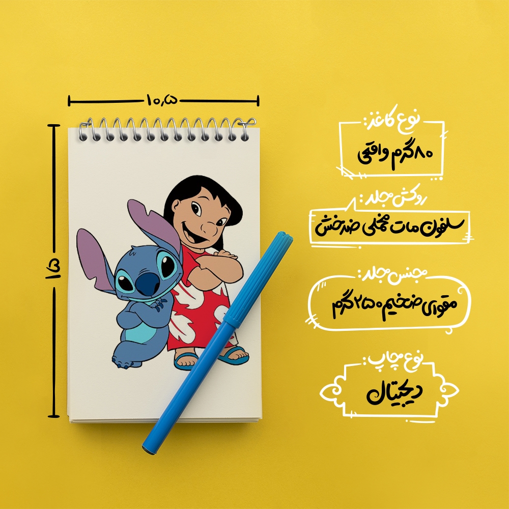 برند خندالو در زمینه تولید انواع دفاتر فانتزی و تحصیلی فعالیت میکند که به دلیل جذابیت ظاهری و طرح های متنوع طرفداران زیادی دارد. دفتر یادداشت خندالو طرح لیلو و استیچ محصولی مناسب برای همه عاشقان لوازم التحریر است و همچنین همه کسانی که بنا به موقعیت تحصیل یا شغلشان با دفتر و نوشت افزار زیاد سر و کار دارند. در تولید دفتر یادداشت خندالو طرح لیلو و استیچ از نوع صحافی فنر مارپیچ استفاده شده که در این نوع صحافی برگهها به راحتی چرخیده و یا بیرون آورده می شوند. دفتر های خندالو دارای جلد انعطاف پذیر از جنس مقوای گلاسه 250 گرم با روکش سلفون مات مخملی است که به شما امکان میدهد از دفتر خود بدون اینکه نگرانی از شکستن یا خراب شدن جلد را داشته باشید استفاده کنید و همچنین در این دفاتر از کاغذ 80 گرم با کیفیت استفاده شده که باعث میشود هنگام نوشتن به خوبی جوهر قلم بر روی صفحه نشسته و از خط خوردگیها جلوگیری کند. دفتر یادداشت خندالو با جنس و دوام مناسب، برگه های کاملاً سفید و خطوط طوسی دقیق را داراست که انسان را به نوشتن منظم و زیبا ترغیب میکند. طراحی کاملاً مناسب این دفاتر، به همراه کیفیت بالا، از آن یک محصول مورد علاقه و قابل اعتماد برای همه مقاطع تحصیلی میسازد. دفتر یادداشت خندالو طرح لیلو و استیچ انتخابی هوشمندانه و مناسب برای افرادی است که به دنبال دفتری با کیفیت و کاربرد عالی هستند. این دفتر، همراه خوبی برای شما در تمام مراحل تحصیل و کار خواهد بود و تجربهای لذتبخش از نوشتن و آموختن را به شما هدیه میدهد.