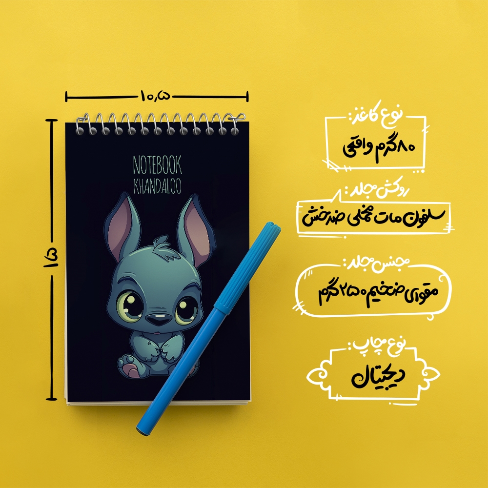 برند خندالو در زمینه تولید انواع دفاتر فانتزی و تحصیلی فعالیت میکند که به دلیل جذابیت ظاهری و طرح های متنوع طرفداران زیادی دارد. دفتر یادداشت خندالو طرح لیلو و استیچ محصولی مناسب برای همه عاشقان لوازم التحریر است و همچنین همه کسانی که بنا به موقعیت تحصیل یا شغلشان با دفتر و نوشت افزار زیاد سر و کار دارند. در تولید دفتر یادداشت خندالو طرح لیلو و استیچ از نوع صحافی فنر مارپیچ استفاده شده که در این نوع صحافی برگهها به راحتی چرخیده و یا بیرون آورده می شوند. دفتر های خندالو دارای جلد انعطاف پذیر از جنس مقوای گلاسه 250 گرم با روکش سلفون مات مخملی است که به شما امکان میدهد از دفتر خود بدون اینکه نگرانی از شکستن یا خراب شدن جلد را داشته باشید استفاده کنید و همچنین در این دفاتر از کاغذ 80 گرم با کیفیت استفاده شده که باعث میشود هنگام نوشتن به خوبی جوهر قلم بر روی صفحه نشسته و از خط خوردگیها جلوگیری کند. دفتر یادداشت خندالو با جنس و دوام مناسب، برگه های کاملاً سفید و خطوط طوسی دقیق را داراست که انسان را به نوشتن منظم و زیبا ترغیب میکند. طراحی کاملاً مناسب این دفاتر، به همراه کیفیت بالا، از آن یک محصول مورد علاقه و قابل اعتماد برای همه مقاطع تحصیلی میسازد. دفتر یادداشت خندالو طرح لیلو و استیچ انتخابی هوشمندانه و مناسب برای افرادی است که به دنبال دفتری با کیفیت و کاربرد عالی هستند. این دفتر، همراه خوبی برای شما در تمام مراحل تحصیل و کار خواهد بود و تجربهای لذتبخش از نوشتن و آموختن را به شما هدیه میدهد.