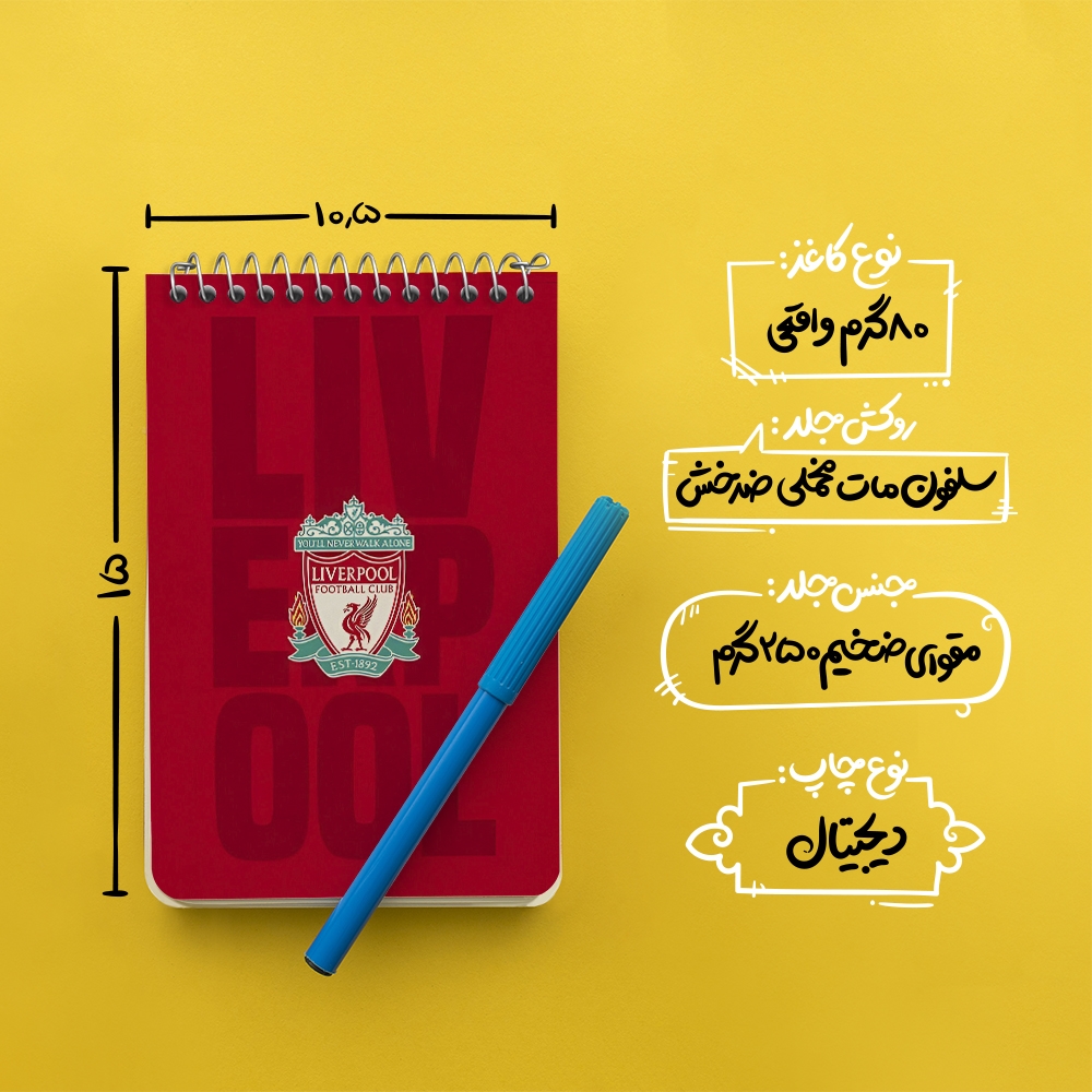 برند خندالو در زمینه تولید انواع دفاتر فانتزی و تحصیلی فعالیت میکند که به دلیل جذابیت ظاهری و طرح های متنوع طرفداران زیادی دارد. دفتر یادداشت خندالو طرح لیورپول (Liverpool) محصولی مناسب برای همه عاشقان لوازم التحریر است و همچنین همه کسانی که بنا به موقعیت تحصیل یا شغلشان با دفتر و نوشت افزار زیاد سر و کار دارند. در تولید دفتر یادداشت خندالو طرح لیورپول (Liverpool) از نوع صحافی فنر مارپیچ استفاده شده که در این نوع صحافی برگه‌ها به راحتی چرخیده و یا بیرون آورده می شوند.