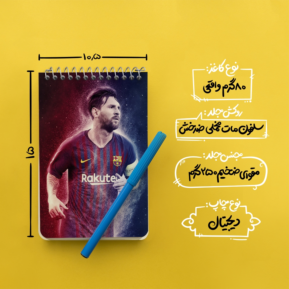 برند خندالو در زمینه تولید انواع دفاتر فانتزی و تحصیلی فعالیت میکند که به دلیل جذابیت ظاهری و طرح های متنوع طرفداران زیادی دارد. دفتر یادداشت خندالو طرح لیونل مسی محصولی مناسب برای همه عاشقان لوازم التحریر است و همچنین همه کسانی که بنا به موقعیت تحصیل یا شغلشان با دفتر و نوشت افزار زیاد سر و کار دارند. در تولید دفتر یادداشت خندالو طرح لیونل مسی از نوع صحافی فنر مارپیچ استفاده شده که در این نوع صحافی برگه‌ها به راحتی چرخیده و یا بیرون آورده می شوند.