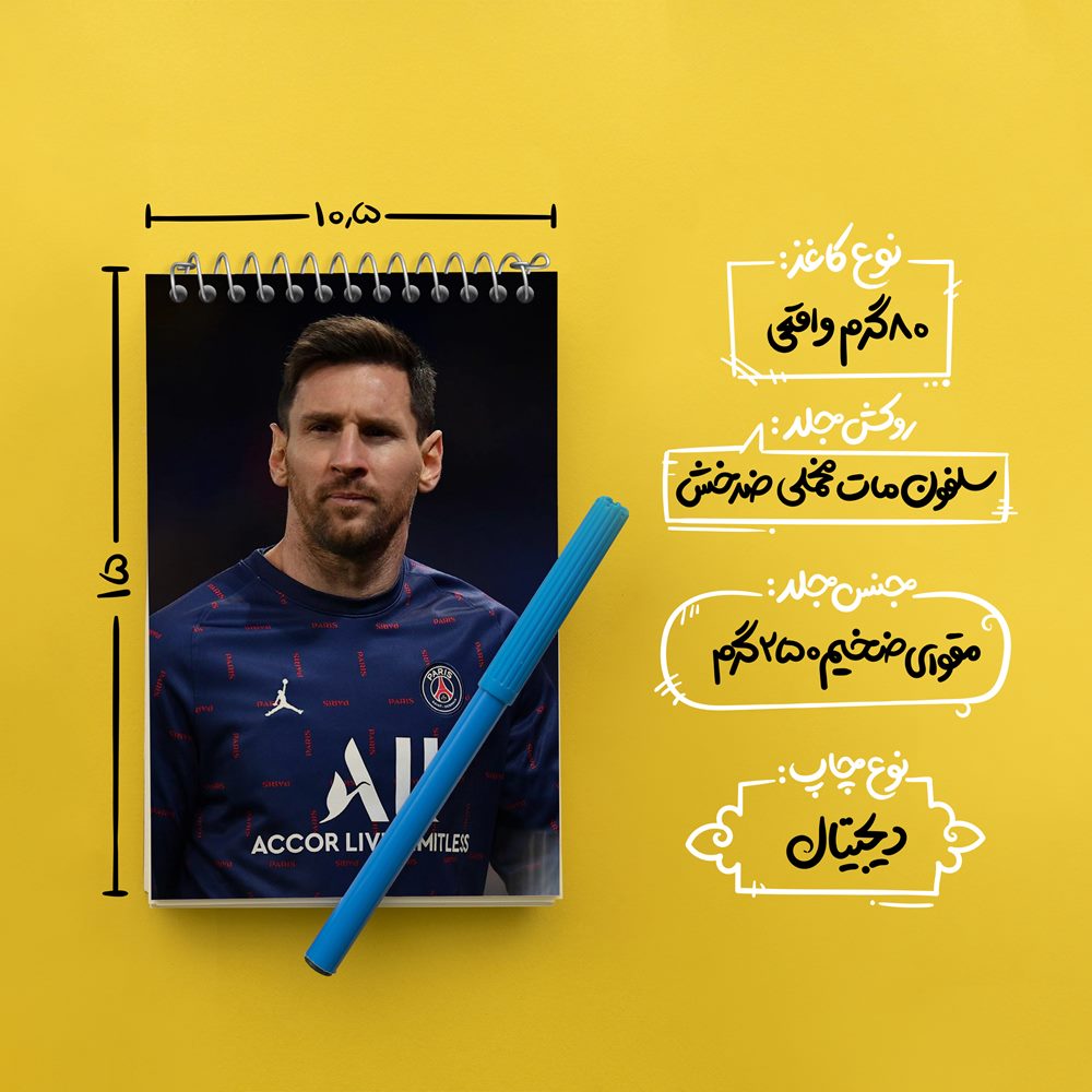 برند خندالو در زمینه تولید انواع دفاتر فانتزی و تحصیلی فعالیت میکند که به دلیل جذابیت ظاهری و طرح های متنوع طرفداران زیادی دارد. دفتر یادداشت خندالو طرح لیونل مسی محصولی مناسب برای همه عاشقان لوازم التحریر است و همچنین همه کسانی که بنا به موقعیت تحصیل یا شغلشان با دفتر و نوشت افزار زیاد سر و کار دارند. در تولید دفتر یادداشت خندالو طرح لیونل مسی از نوع صحافی فنر مارپیچ استفاده شده که در این نوع صحافی برگه‌ها به راحتی چرخیده و یا بیرون آورده می شوند.