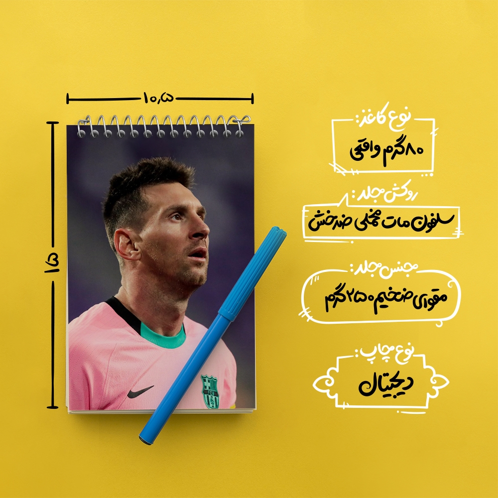 برند خندالو در زمینه تولید انواع دفاتر فانتزی و تحصیلی فعالیت میکند که به دلیل جذابیت ظاهری و طرح های متنوع طرفداران زیادی دارد. دفتر یادداشت خندالو طرح لیونل مسی محصولی مناسب برای همه عاشقان لوازم التحریر است و همچنین همه کسانی که بنا به موقعیت تحصیل یا شغلشان با دفتر و نوشت افزار زیاد سر و کار دارند. در تولید دفتر یادداشت خندالو طرح لیونل مسی از نوع صحافی فنر مارپیچ استفاده شده که در این نوع صحافی برگه‌ها به راحتی چرخیده و یا بیرون آورده می شوند.