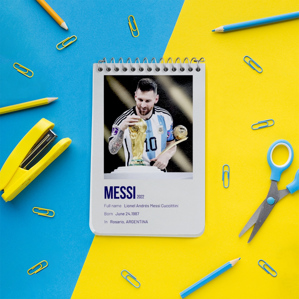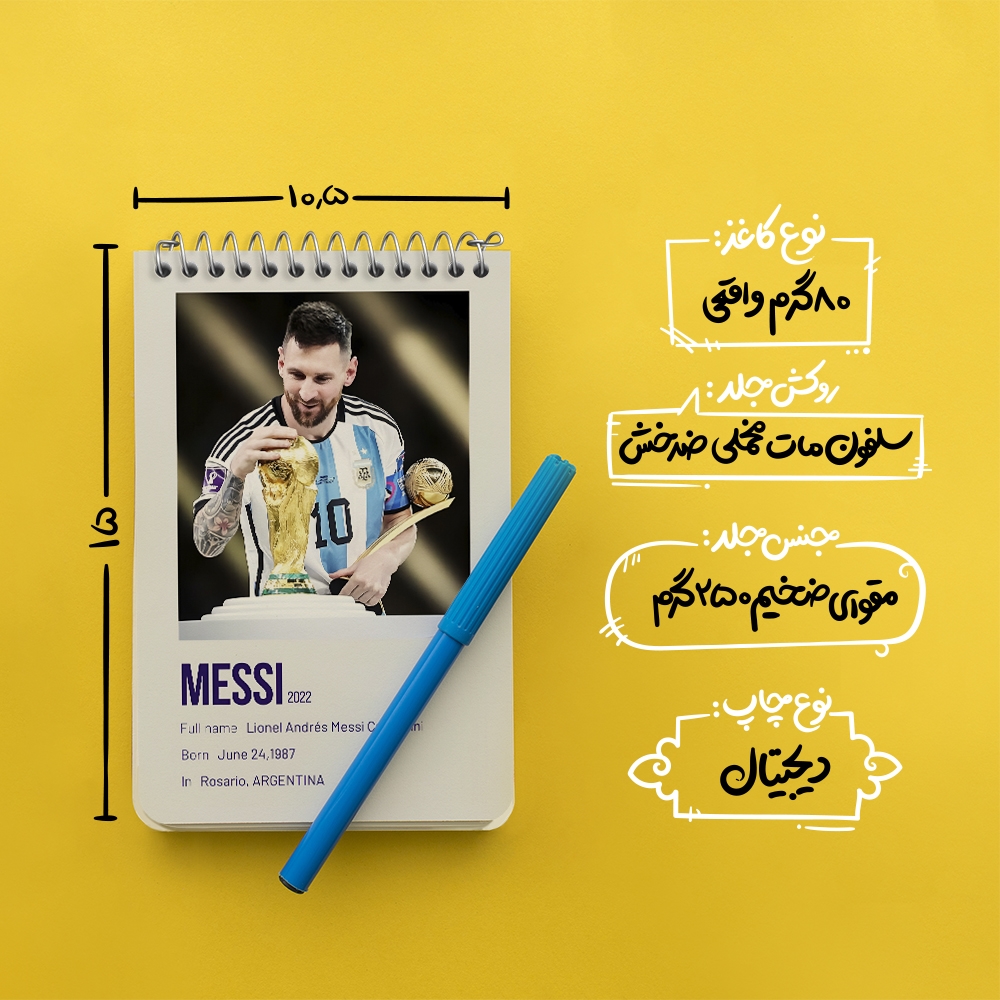 برند خندالو در زمینه تولید انواع دفاتر فانتزی و تحصیلی فعالیت میکند که به دلیل جذابیت ظاهری و طرح های متنوع طرفداران زیادی دارد. دفتر یادداشت خندالو طرح لیونل مسی محصولی مناسب برای همه عاشقان لوازم التحریر است و همچنین همه کسانی که بنا به موقعیت تحصیل یا شغلشان با دفتر و نوشت افزار زیاد سر و کار دارند. در تولید دفتر یادداشت خندالو طرح لیونل مسی از نوع صحافی فنر مارپیچ استفاده شده که در این نوع صحافی برگه‌ها به راحتی چرخیده و یا بیرون آورده می شوند.