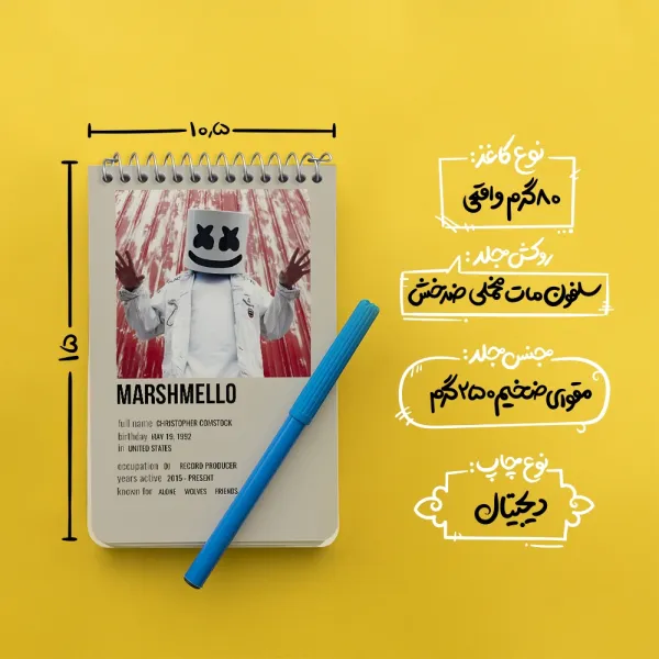 برند خندالو در زمینه تولید انواع دفاتر فانتزی و تحصیلی فعالیت میکند که به دلیل جذابیت ظاهری و طرح های متنوع طرفداران زیادی دارد. دفتر یادداشت خندالو طرح مارشملو (Marshmello) محصولی مناسب برای همه عاشقان لوازم التحریر است و همچنین همه کسانی که بنا به موقعیت تحصیل یا شغلشان با دفتر و نوشت افزار زیاد سر و کار دارند. در تولید دفتر یادداشت خندالو طرح مارشملو (Marshmello) از نوع صحافی فنر مارپیچ استفاده شده که در این نوع صحافی برگهها به راحتی چرخیده و یا بیرون آورده می شوند. دفتر های خندالو دارای جلد انعطاف پذیر از جنس مقوای گلاسه 250 گرم با روکش سلفون مات مخملی است که به شما امکان میدهد از دفتر خود بدون اینکه نگرانی از شکستن یا خراب شدن جلد را داشته باشید استفاده کنید و همچنین در این دفاتر از کاغذ 80 گرم با کیفیت استفاده شده که باعث میشود هنگام نوشتن به خوبی جوهر قلم بر روی صفحه نشسته و از خط خوردگیها جلوگیری کند. دفتر یادداشت خندالو با جنس و دوام مناسب، برگه های کاملاً سفید و خطوط طوسی دقیق را داراست که انسان را به نوشتن منظم و زیبا ترغیب میکند. طراحی کاملاً مناسب این دفاتر، به همراه کیفیت بالا، از آن یک محصول مورد علاقه و قابل اعتماد برای همه مقاطع تحصیلی میسازد. دفتر یادداشت خندالو طرح مارشملو (Marshmello) انتخابی هوشمندانه و مناسب برای افرادی است که به دنبال دفتری با کیفیت و کاربرد عالی هستند. این دفتر، همراه خوبی برای شما در تمام مراحل تحصیل و کار خواهد بود و تجربهای لذتبخش از نوشتن و آموختن را به شما هدیه میدهد.