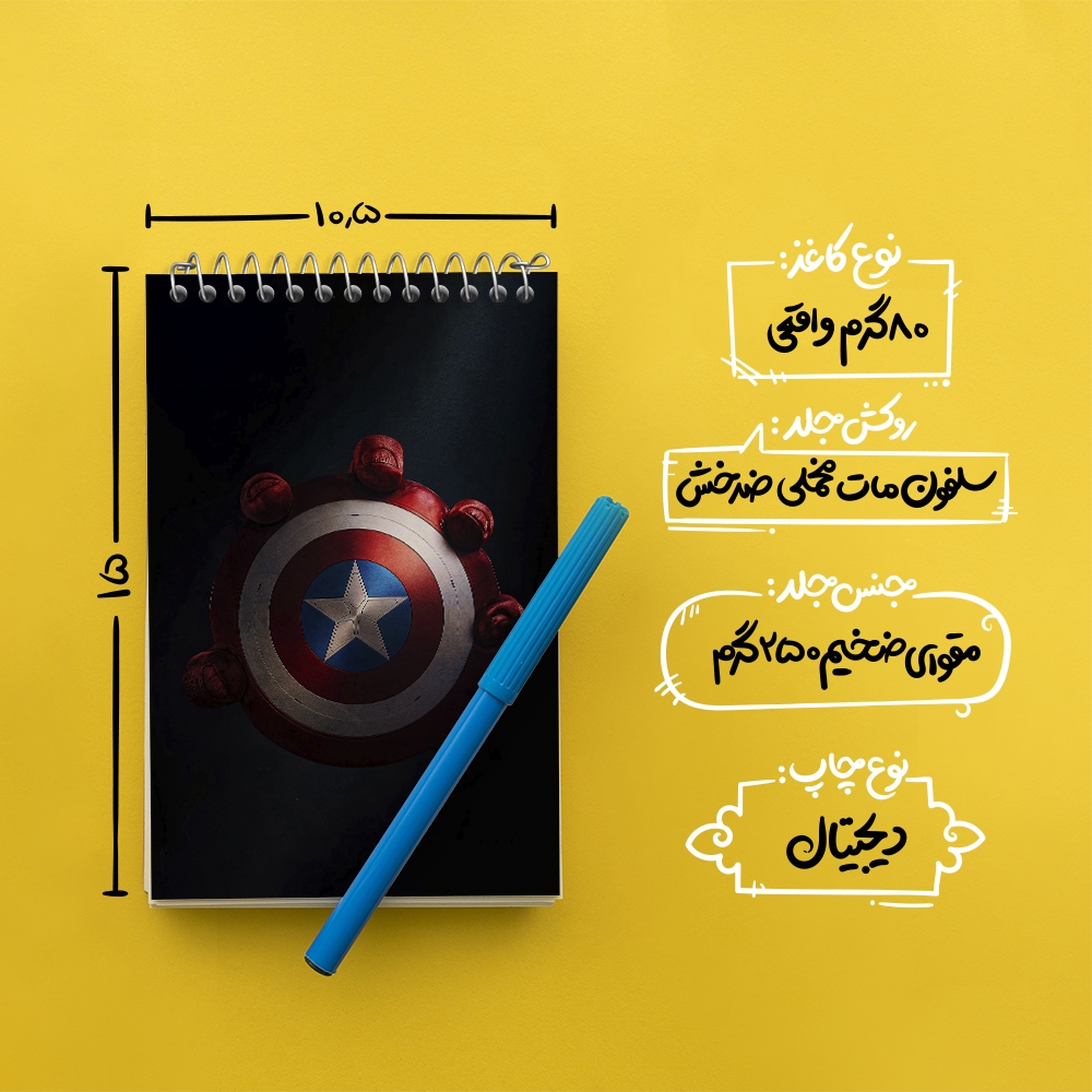 برند خندالو در زمینه تولید انواع دفاتر فانتزی و تحصیلی فعالیت میکند که به دلیل جذابیت ظاهری و طرح های متنوع طرفداران زیادی دارد. دفتر یادداشت خندالو طرح مارول (Marvel) محصولی مناسب برای همه عاشقان لوازم التحریر است و همچنین همه کسانی که بنا به موقعیت تحصیل یا شغلشان با دفتر و نوشت افزار زیاد سر و کار دارند. در تولید دفتر یادداشت خندالو طرح مارول (Marvel) از نوع صحافی فنر مارپیچ استفاده شده که در این نوع صحافی برگه‌ها به راحتی چرخیده و یا بیرون آورده می شوند.