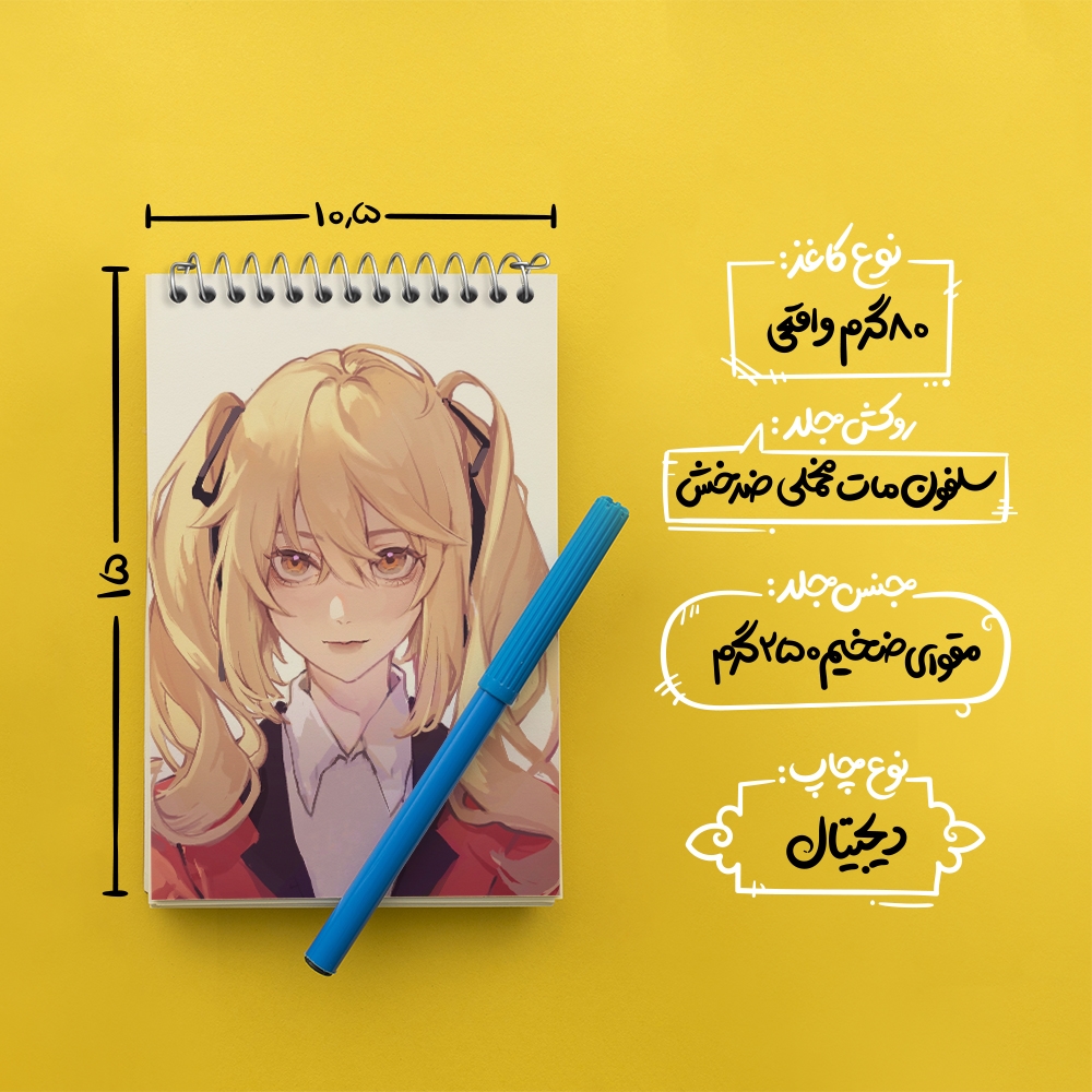 برند خندالو در زمینه تولید انواع دفاتر فانتزی و تحصیلی فعالیت میکند که به دلیل جذابیت ظاهری و طرح های متنوع طرفداران زیادی دارد. دفتر یادداشت خندالو طرح ماری انیمه قمارباز محصولی مناسب برای همه عاشقان لوازم التحریر است و همچنین همه کسانی که بنا به موقعیت تحصیل یا شغلشان با دفتر و نوشت افزار زیاد سر و کار دارند. در تولید دفتر یادداشت خندالو طرح ماری انیمه قمارباز از نوع صحافی فنر مارپیچ استفاده شده که در این نوع صحافی برگهها به راحتی چرخیده و یا بیرون آورده می شوند. دفتر های خندالو دارای جلد انعطاف پذیر از جنس مقوای گلاسه 250 گرم با روکش سلفون مات مخملی است که به شما امکان میدهد از دفتر خود بدون اینکه نگرانی از شکستن یا خراب شدن جلد را داشته باشید استفاده کنید و همچنین در این دفاتر از کاغذ 80 گرم با کیفیت استفاده شده که باعث میشود هنگام نوشتن به خوبی جوهر قلم بر روی صفحه نشسته و از خط خوردگیها جلوگیری کند. دفتر یادداشت خندالو با جنس و دوام مناسب، برگه های کاملاً سفید و خطوط طوسی دقیق را داراست که انسان را به نوشتن منظم و زیبا ترغیب میکند. طراحی کاملاً مناسب این دفاتر، به همراه کیفیت بالا، از آن یک محصول مورد علاقه و قابل اعتماد برای همه مقاطع تحصیلی میسازد. دفتر یادداشت خندالو طرح ماری انیمه قمارباز انتخابی هوشمندانه و مناسب برای افرادی است که به دنبال دفتری با کیفیت و کاربرد عالی هستند. این دفتر، همراه خوبی برای شما در تمام مراحل تحصیل و کار خواهد بود و تجربهای لذتبخش از نوشتن و آموختن را به شما هدیه میدهد.