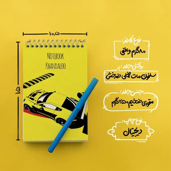 برند خندالو در زمینه تولید انواع دفاتر فانتزی و تحصیلی فعالیت میکند که به دلیل جذابیت ظاهری و طرح های متنوع طرفداران زیادی دارد. دفتر یادداشت خندالو طرح ماشین اسپرت محصولی مناسب برای همه عاشقان لوازم التحریر است و همچنین همه کسانی که بنا به موقعیت تحصیل یا شغلشان با دفتر و نوشت افزار زیاد سر و کار دارند. در تولید دفتر یادداشت خندالو طرح ماشین اسپرت از نوع صحافی فنر مارپیچ استفاده شده که در این نوع صحافی برگه‌ها به راحتی چرخیده و یا بیرون آورده می شوند.
