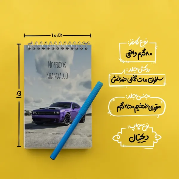 برند خندالو در زمینه تولید انواع دفاتر فانتزی و تحصیلی فعالیت میکند که به دلیل جذابیت ظاهری و طرح های متنوع طرفداران زیادی دارد. دفتر یادداشت خندالو طرح ماشین اسپرت (Dodge Challenger) محصولی مناسب برای همه عاشقان لوازم التحریر است و همچنین همه کسانی که بنا به موقعیت تحصیل یا شغلشان با دفتر و نوشت افزار زیاد سر و کار دارند. در تولید دفتر یادداشت خندالو طرح ماشین اسپرت (Dodge Challenger) از نوع صحافی فنر مارپیچ استفاده شده که در این نوع صحافی برگهها به راحتی چرخیده و یا بیرون آورده می شوند. دفتر های خندالو دارای جلد انعطاف پذیر از جنس مقوای گلاسه 250 گرم با روکش سلفون مات مخملی است که به شما امکان میدهد از دفتر خود بدون اینکه نگرانی از شکستن یا خراب شدن جلد را داشته باشید استفاده کنید و همچنین در این دفاتر از کاغذ 80 گرم با کیفیت استفاده شده که باعث میشود هنگام نوشتن به خوبی جوهر قلم بر روی صفحه نشسته و از خط خوردگیها جلوگیری کند. دفتر یادداشت خندالو با جنس و دوام مناسب، برگه های کاملاً سفید و خطوط طوسی دقیق را داراست که انسان را به نوشتن منظم و زیبا ترغیب میکند. طراحی کاملاً مناسب این دفاتر، به همراه کیفیت بالا، از آن یک محصول مورد علاقه و قابل اعتماد برای همه مقاطع تحصیلی میسازد. دفتر یادداشت خندالو طرح ماشین اسپرت (Dodge Challenger) انتخابی هوشمندانه و مناسب برای افرادی است که به دنبال دفتری با کیفیت و کاربرد عالی هستند. این دفتر، همراه خوبی برای شما در تمام مراحل تحصیل و کار خواهد بود و تجربهای لذتبخش از نوشتن و آموختن را به شما هدیه میدهد.
