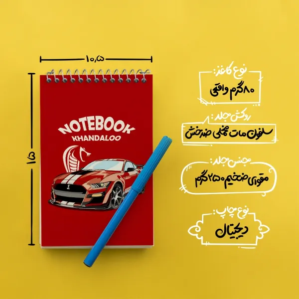 برند خندالو در زمینه تولید انواع دفاتر فانتزی و تحصیلی فعالیت میکند که به دلیل جذابیت ظاهری و طرح های متنوع طرفداران زیادی دارد. دفتر یادداشت خندالو طرح ماشین اسپرت (Ford Mustang Shelby GT500) محصولی مناسب برای همه عاشقان لوازم التحریر است و همچنین همه کسانی که بنا به موقعیت تحصیل یا شغلشان با دفتر و نوشت افزار زیاد سر و کار دارند. در تولید دفتر یادداشت خندالو طرح ماشین اسپرت (Ford Mustang Shelby GT500) از نوع صحافی فنر مارپیچ استفاده شده که در این نوع صحافی برگهها به راحتی چرخیده و یا بیرون آورده می شوند. دفتر های خندالو دارای جلد انعطاف پذیر از جنس مقوای گلاسه 250 گرم با روکش سلفون مات مخملی است که به شما امکان میدهد از دفتر خود بدون اینکه نگرانی از شکستن یا خراب شدن جلد را داشته باشید استفاده کنید و همچنین در این دفاتر از کاغذ 80 گرم با کیفیت استفاده شده که باعث میشود هنگام نوشتن به خوبی جوهر قلم بر روی صفحه نشسته و از خط خوردگیها جلوگیری کند. دفتر یادداشت خندالو با جنس و دوام مناسب، برگه های کاملاً سفید و خطوط طوسی دقیق را داراست که انسان را به نوشتن منظم و زیبا ترغیب میکند. طراحی کاملاً مناسب این دفاتر، به همراه کیفیت بالا، از آن یک محصول مورد علاقه و قابل اعتماد برای همه مقاطع تحصیلی میسازد. دفتر یادداشت خندالو طرح ماشین اسپرت (Ford Mustang Shelby GT500) انتخابی هوشمندانه و مناسب برای افرادی است که به دنبال دفتری با کیفیت و کاربرد عالی هستند. این دفتر، همراه خوبی برای شما در تمام مراحل تحصیل و کار خواهد بود و تجربهای لذتبخش از نوشتن و آموختن را به شما هدیه میدهد.