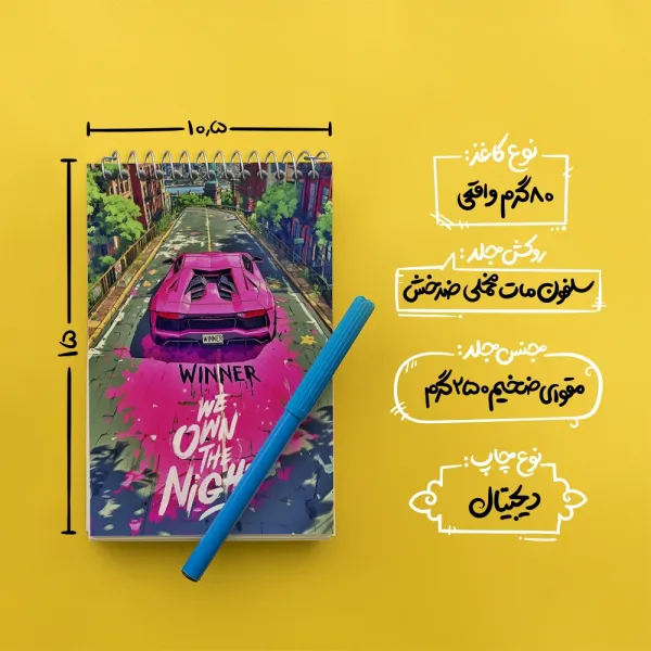 برند خندالو در زمینه تولید انواع دفاتر فانتزی و تحصیلی فعالیت میکند که به دلیل جذابیت ظاهری و طرح های متنوع طرفداران زیادی دارد. دفتر یادداشت خندالو طرح ماشین اسپورت محصولی مناسب برای همه عاشقان لوازم التحریر است و همچنین همه کسانی که بنا به موقعیت تحصیل یا شغلشان با دفتر و نوشت افزار زیاد سر و کار دارند. در تولید دفتر یادداشت خندالو طرح ماشین اسپورت از نوع صحافی فنر مارپیچ استفاده شده که در این نوع صحافی برگهها به راحتی چرخیده و یا بیرون آورده می شوند. دفتر های خندالو دارای جلد انعطاف پذیر از جنس مقوای گلاسه 250 گرم با روکش سلفون مات مخملی است که به شما امکان میدهد از دفتر خود بدون اینکه نگرانی از شکستن یا خراب شدن جلد را داشته باشید استفاده کنید و همچنین در این دفاتر از کاغذ 80 گرم با کیفیت استفاده شده که باعث میشود هنگام نوشتن به خوبی جوهر قلم بر روی صفحه نشسته و از خط خوردگیها جلوگیری کند. دفتر یادداشت خندالو با جنس و دوام مناسب، برگه های کاملاً سفید و خطوط طوسی دقیق را داراست که انسان را به نوشتن منظم و زیبا ترغیب میکند. طراحی کاملاً مناسب این دفاتر، به همراه کیفیت بالا، از آن یک محصول مورد علاقه و قابل اعتماد برای همه مقاطع تحصیلی میسازد. دفتر یادداشت خندالو طرح ماشین اسپورت انتخابی هوشمندانه و مناسب برای افرادی است که به دنبال دفتری با کیفیت و کاربرد عالی هستند. این دفتر، همراه خوبی برای شما در تمام مراحل تحصیل و کار خواهد بود و تجربهای لذتبخش از نوشتن و آموختن را به شما هدیه میدهد.
