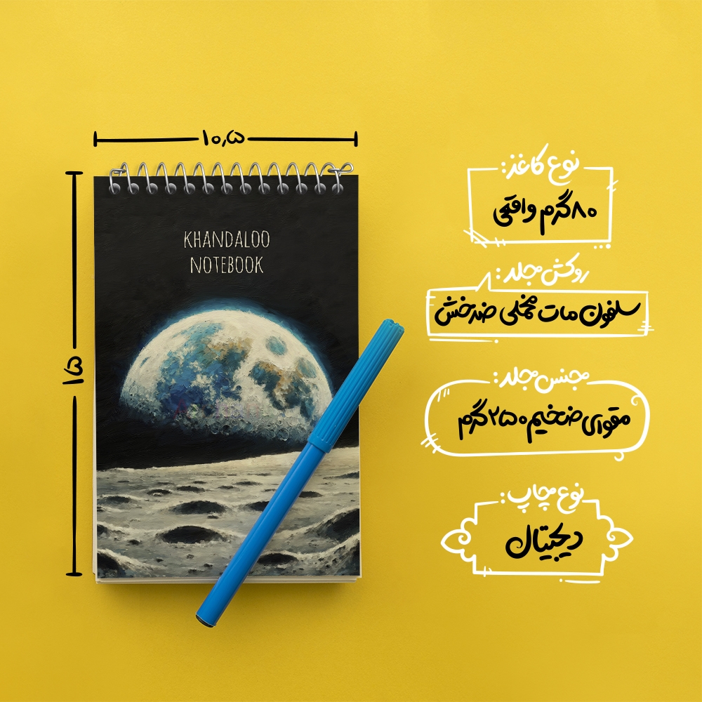 برند خندالو در زمینه تولید انواع دفاتر فانتزی و تحصیلی فعالیت میکند که به دلیل جذابیت ظاهری و طرح های متنوع طرفداران زیادی دارد. دفتر یادداشت خندالو طرح ماه و زمین محصولی مناسب برای همه عاشقان لوازم التحریر است و همچنین همه کسانی که بنا به موقعیت تحصیل یا شغلشان با دفتر و نوشت افزار زیاد سر و کار دارند. در تولید دفتر یادداشت خندالو طرح ماه و زمین از نوع صحافی فنر مارپیچ استفاده شده که در این نوع صحافی برگهها به راحتی چرخیده و یا بیرون آورده می شوند. دفتر های خندالو دارای جلد انعطاف پذیر از جنس مقوای گلاسه 250 گرم با روکش سلفون مات مخملی است که به شما امکان میدهد از دفتر خود بدون اینکه نگرانی از شکستن یا خراب شدن جلد را داشته باشید استفاده کنید و همچنین در این دفاتر از کاغذ 80 گرم با کیفیت استفاده شده که باعث میشود هنگام نوشتن به خوبی جوهر قلم بر روی صفحه نشسته و از خط خوردگیها جلوگیری کند. دفتر یادداشت خندالو با جنس و دوام مناسب، برگه های کاملاً سفید و خطوط طوسی دقیق را داراست که انسان را به نوشتن منظم و زیبا ترغیب میکند. طراحی کاملاً مناسب این دفاتر، به همراه کیفیت بالا، از آن یک محصول مورد علاقه و قابل اعتماد برای همه مقاطع تحصیلی میسازد. دفتر یادداشت خندالو طرح ماه و زمین انتخابی هوشمندانه و مناسب برای افرادی است که به دنبال دفتری با کیفیت و کاربرد عالی هستند. این دفتر، همراه خوبی برای شما در تمام مراحل تحصیل و کار خواهد بود و تجربهای لذتبخش از نوشتن و آموختن را به شما هدیه میدهد.