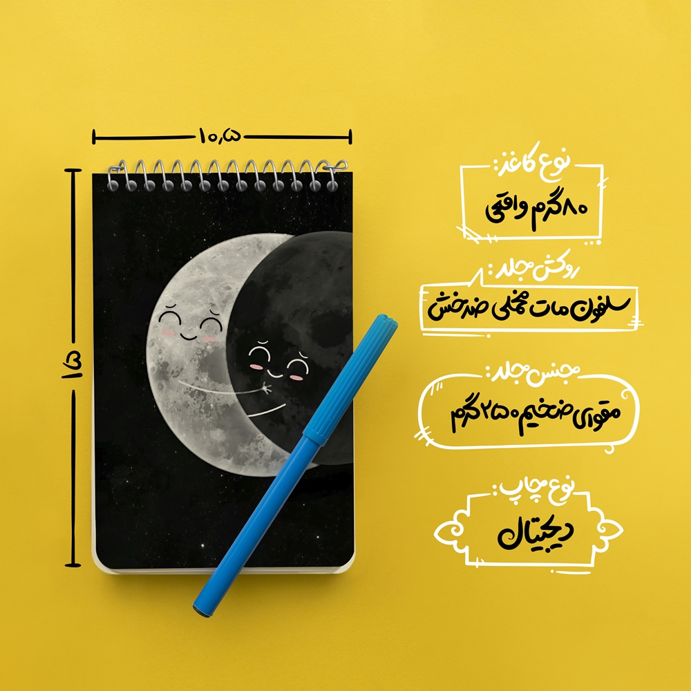 برند خندالو در زمینه تولید انواع دفاتر فانتزی و تحصیلی فعالیت میکند که به دلیل جذابیت ظاهری و طرح های متنوع طرفداران زیادی دارد. دفتر یادداشت خندالو طرح ماه کیوت محصولی مناسب برای همه عاشقان لوازم التحریر است و همچنین همه کسانی که بنا به موقعیت تحصیل یا شغلشان با دفتر و نوشت افزار زیاد سر و کار دارند. در تولید دفتر یادداشت خندالو طرح ماه کیوت از نوع صحافی فنر مارپیچ استفاده شده که در این نوع صحافی برگهها به راحتی چرخیده و یا بیرون آورده می شوند. دفتر های خندالو دارای جلد انعطاف پذیر از جنس مقوای گلاسه 250 گرم با روکش سلفون مات مخملی است که به شما امکان میدهد از دفتر خود بدون اینکه نگرانی از شکستن یا خراب شدن جلد را داشته باشید استفاده کنید و همچنین در این دفاتر از کاغذ 80 گرم با کیفیت استفاده شده که باعث میشود هنگام نوشتن به خوبی جوهر قلم بر روی صفحه نشسته و از خط خوردگیها جلوگیری کند. دفتر یادداشت خندالو با جنس و دوام مناسب، برگه های کاملاً سفید و خطوط طوسی دقیق را داراست که انسان را به نوشتن منظم و زیبا ترغیب میکند. طراحی کاملاً مناسب این دفاتر، به همراه کیفیت بالا، از آن یک محصول مورد علاقه و قابل اعتماد برای همه مقاطع تحصیلی میسازد. دفتر یادداشت خندالو طرح ماه کیوت انتخابی هوشمندانه و مناسب برای افرادی است که به دنبال دفتری با کیفیت و کاربرد عالی هستند. این دفتر، همراه خوبی برای شما در تمام مراحل تحصیل و کار خواهد بود و تجربهای لذتبخش از نوشتن و آموختن را به شما هدیه میدهد.