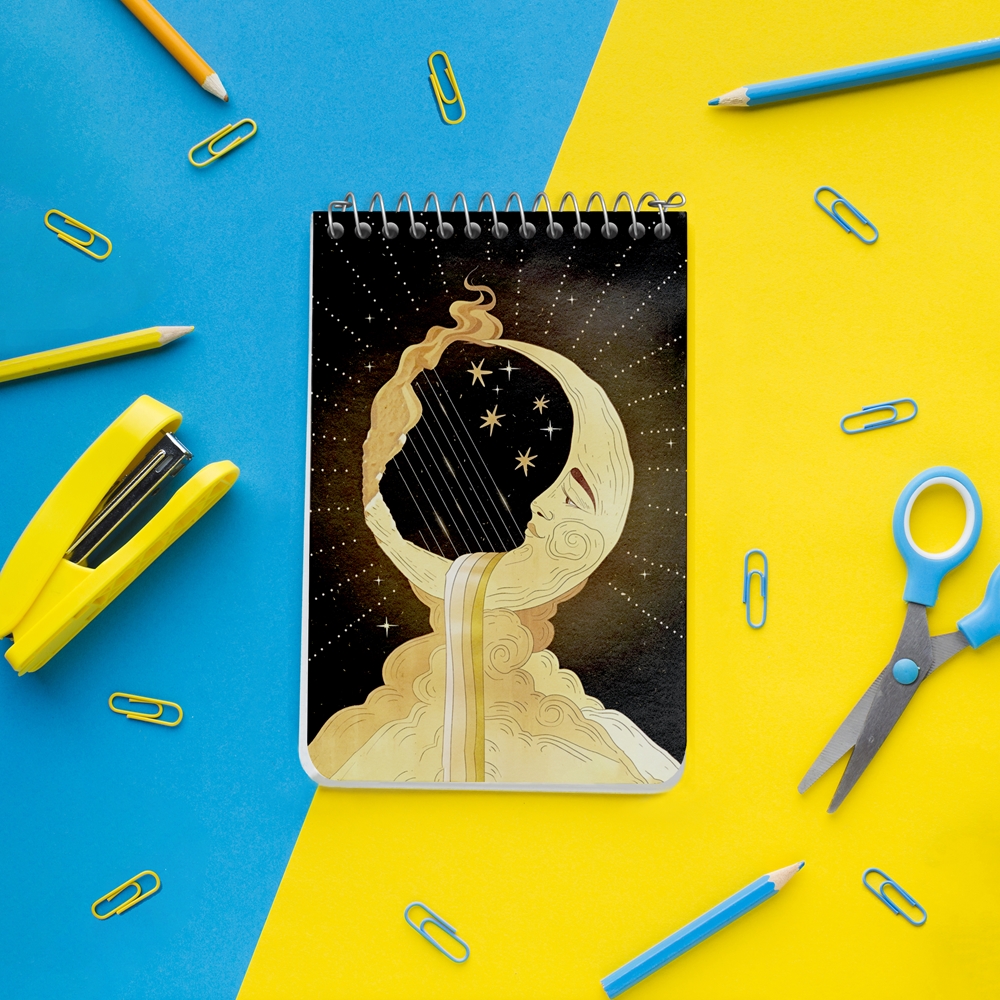 برند خندالو در زمینه تولید انواع دفاتر فانتزی و تحصیلی فعالیت میکند که به دلیل جذابیت ظاهری و طرح های متنوع طرفداران زیادی دارد. دفتر یادداشت خندالو طرح ماه محصولی مناسب برای همه عاشقان لوازم التحریر است و همچنین همه کسانی که بنا به موقعیت تحصیل یا شغلشان با دفتر و نوشت افزار زیاد سر و کار دارند. در تولید دفتر یادداشت خندالو طرح ماه از نوع صحافی فنر مارپیچ استفاده شده که در این نوع صحافی برگه‌ها به راحتی چرخیده و یا بیرون آورده می شوند.