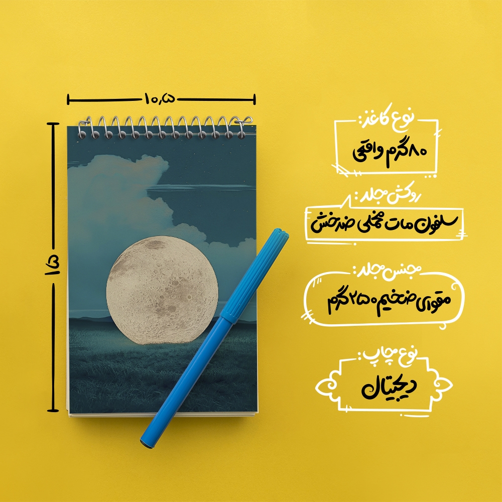 برند خندالو در زمینه تولید انواع دفاتر فانتزی و تحصیلی فعالیت میکند که به دلیل جذابیت ظاهری و طرح های متنوع طرفداران زیادی دارد. دفتر یادداشت خندالو طرح ماه محصولی مناسب برای همه عاشقان لوازم التحریر است و همچنین همه کسانی که بنا به موقعیت تحصیل یا شغلشان با دفتر و نوشت افزار زیاد سر و کار دارند. در تولید دفتر یادداشت خندالو طرح ماه از نوع صحافی فنر مارپیچ استفاده شده که در این نوع صحافی برگه‌ها به راحتی چرخیده و یا بیرون آورده می شوند.