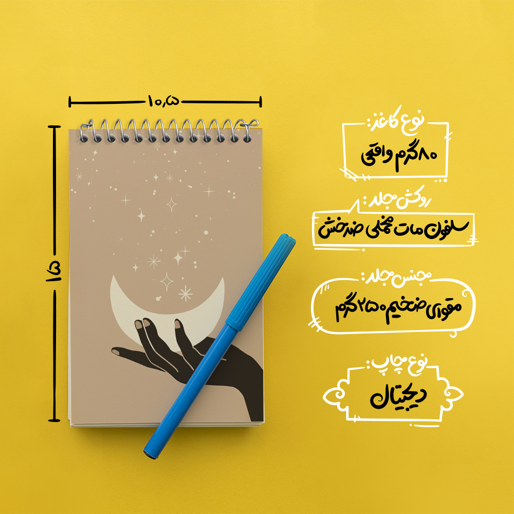 برند خندالو در زمینه تولید انواع دفاتر فانتزی و تحصیلی فعالیت میکند که به دلیل جذابیت ظاهری و طرح های متنوع طرفداران زیادی دارد. دفتر یادداشت خندالو طرح ماه (Moon) محصولی مناسب برای همه عاشقان لوازم التحریر است و همچنین همه کسانی که بنا به موقعیت تحصیل یا شغلشان با دفتر و نوشت افزار زیاد سر و کار دارند. در تولید دفتر یادداشت خندالو طرح ماه (Moon) از نوع صحافی فنر مارپیچ استفاده شده که در این نوع صحافی برگه‌ها به راحتی چرخیده و یا بیرون آورده می شوند.