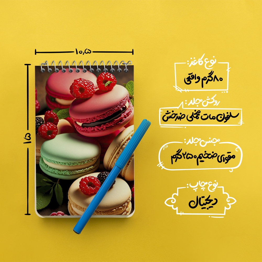 برند خندالو در زمینه تولید انواع دفاتر فانتزی و تحصیلی فعالیت میکند که به دلیل جذابیت ظاهری و طرح های متنوع طرفداران زیادی دارد. دفتر یادداشت خندالو طرح ماکارون (Macaron) محصولی مناسب برای همه عاشقان لوازم التحریر است و همچنین همه کسانی که بنا به موقعیت تحصیل یا شغلشان با دفتر و نوشت افزار زیاد سر و کار دارند. در تولید دفتر یادداشت خندالو طرح ماکارون (Macaron) از نوع صحافی فنر مارپیچ استفاده شده که در این نوع صحافی برگهها به راحتی چرخیده و یا بیرون آورده می شوند. دفتر های خندالو دارای جلد انعطاف پذیر از جنس مقوای گلاسه 250 گرم با روکش سلفون مات مخملی است که به شما امکان میدهد از دفتر خود بدون اینکه نگرانی از شکستن یا خراب شدن جلد را داشته باشید استفاده کنید و همچنین در این دفاتر از کاغذ 80 گرم با کیفیت استفاده شده که باعث میشود هنگام نوشتن به خوبی جوهر قلم بر روی صفحه نشسته و از خط خوردگیها جلوگیری کند. دفتر یادداشت خندالو با جنس و دوام مناسب، برگه های کاملاً سفید و خطوط طوسی دقیق را داراست که انسان را به نوشتن منظم و زیبا ترغیب میکند. طراحی کاملاً مناسب این دفاتر، به همراه کیفیت بالا، از آن یک محصول مورد علاقه و قابل اعتماد برای همه مقاطع تحصیلی میسازد. دفتر یادداشت خندالو طرح ماکارون (Macaron) انتخابی هوشمندانه و مناسب برای افرادی است که به دنبال دفتری با کیفیت و کاربرد عالی هستند. این دفتر، همراه خوبی برای شما در تمام مراحل تحصیل و کار خواهد بود و تجربهای لذتبخش از نوشتن و آموختن را به شما هدیه میدهد.