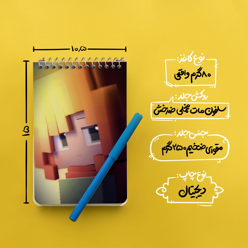 برند خندالو در زمینه تولید انواع دفاتر فانتزی و تحصیلی فعالیت میکند که به دلیل جذابیت ظاهری و طرح های متنوع طرفداران زیادی دارد. دفتر یادداشت خندالو طرح ماینکرافت (Minecraft) محصولی مناسب برای همه عاشقان لوازم التحریر است و همچنین همه کسانی که بنا به موقعیت تحصیل یا شغلشان با دفتر و نوشت افزار زیاد سر و کار دارند. در تولید دفتر یادداشت خندالو طرح ماینکرافت (Minecraft) از نوع صحافی فنر مارپیچ استفاده شده که در این نوع صحافی برگه‌ها به راحتی چرخیده و یا بیرون آورده می شوند.