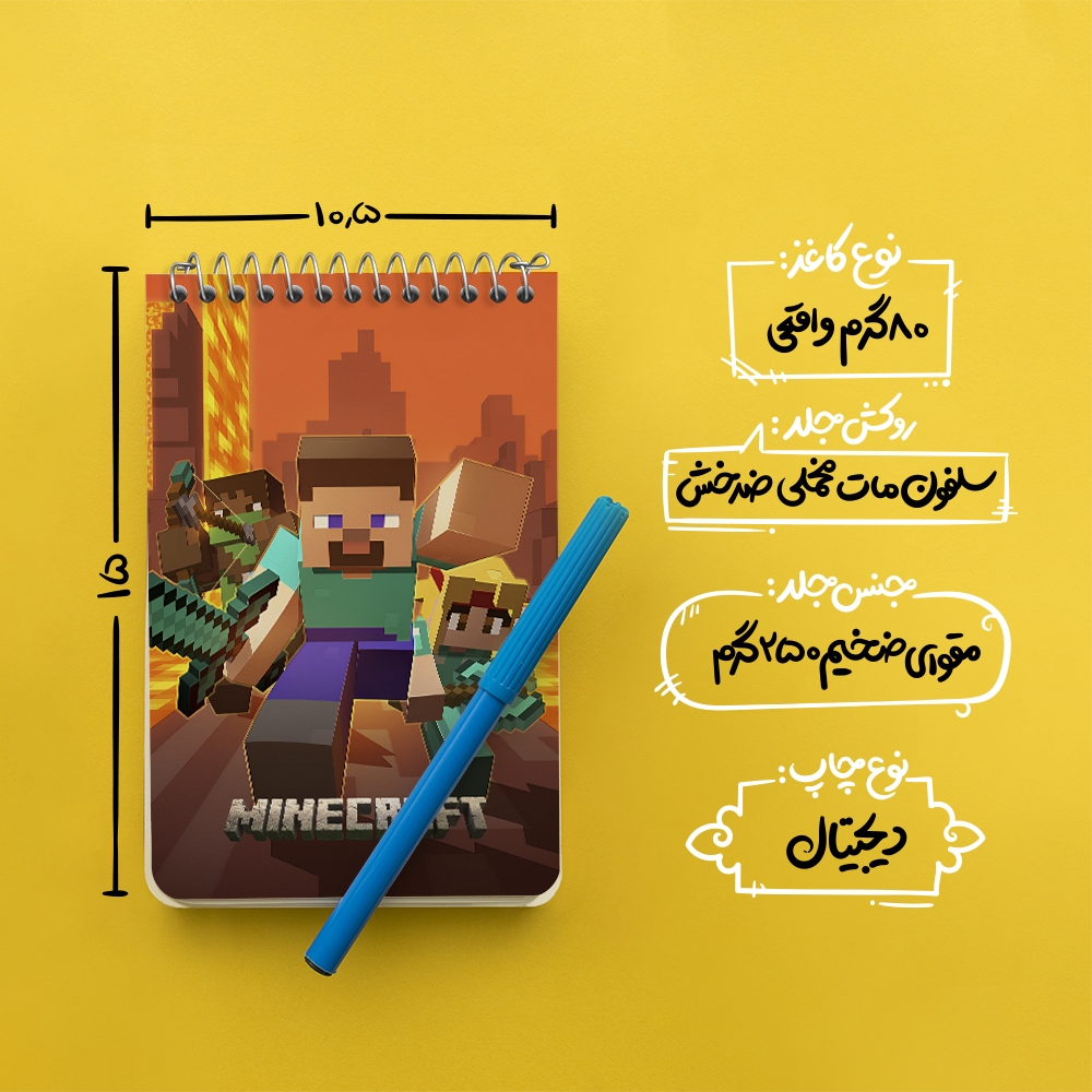برند خندالو در زمینه تولید انواع دفاتر فانتزی و تحصیلی فعالیت میکند که به دلیل جذابیت ظاهری و طرح های متنوع طرفداران زیادی دارد. دفتر یادداشت خندالو طرح ماینکرافت (Minecraft) محصولی مناسب برای همه عاشقان لوازم التحریر است و همچنین همه کسانی که بنا به موقعیت تحصیل یا شغلشان با دفتر و نوشت افزار زیاد سر و کار دارند. در تولید دفتر یادداشت خندالو طرح ماینکرافت (Minecraft) از نوع صحافی فنر مارپیچ استفاده شده که در این نوع صحافی برگه‌ها به راحتی چرخیده و یا بیرون آورده می شوند.