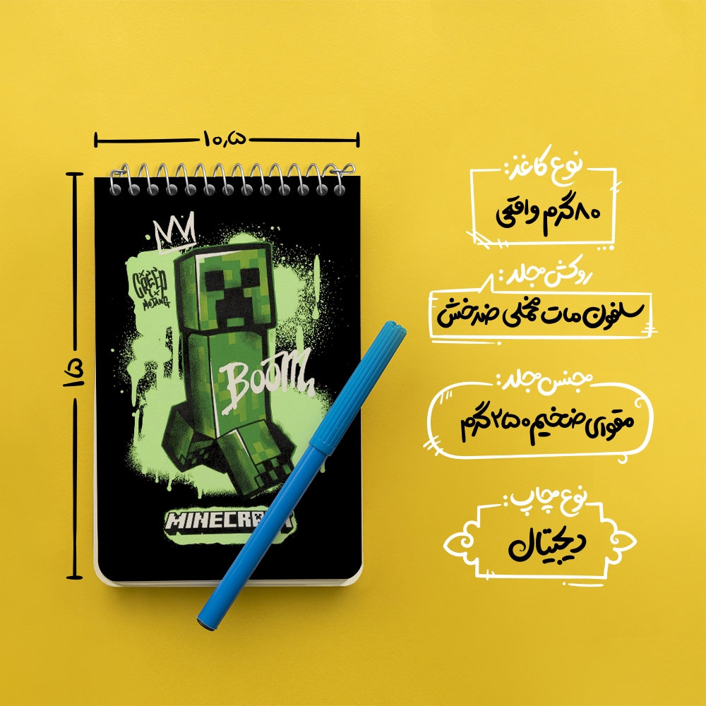 برند خندالو در زمینه تولید انواع دفاتر فانتزی و تحصیلی فعالیت میکند که به دلیل جذابیت ظاهری و طرح های متنوع طرفداران زیادی دارد. دفتر یادداشت خندالو طرح ماینکرافت (Minecraft) محصولی مناسب برای همه عاشقان لوازم التحریر است و همچنین همه کسانی که بنا به موقعیت تحصیل یا شغلشان با دفتر و نوشت افزار زیاد سر و کار دارند. در تولید دفتر یادداشت خندالو طرح ماینکرافت (Minecraft) از نوع صحافی فنر مارپیچ استفاده شده که در این نوع صحافی برگه‌ها به راحتی چرخیده و یا بیرون آورده می شوند.