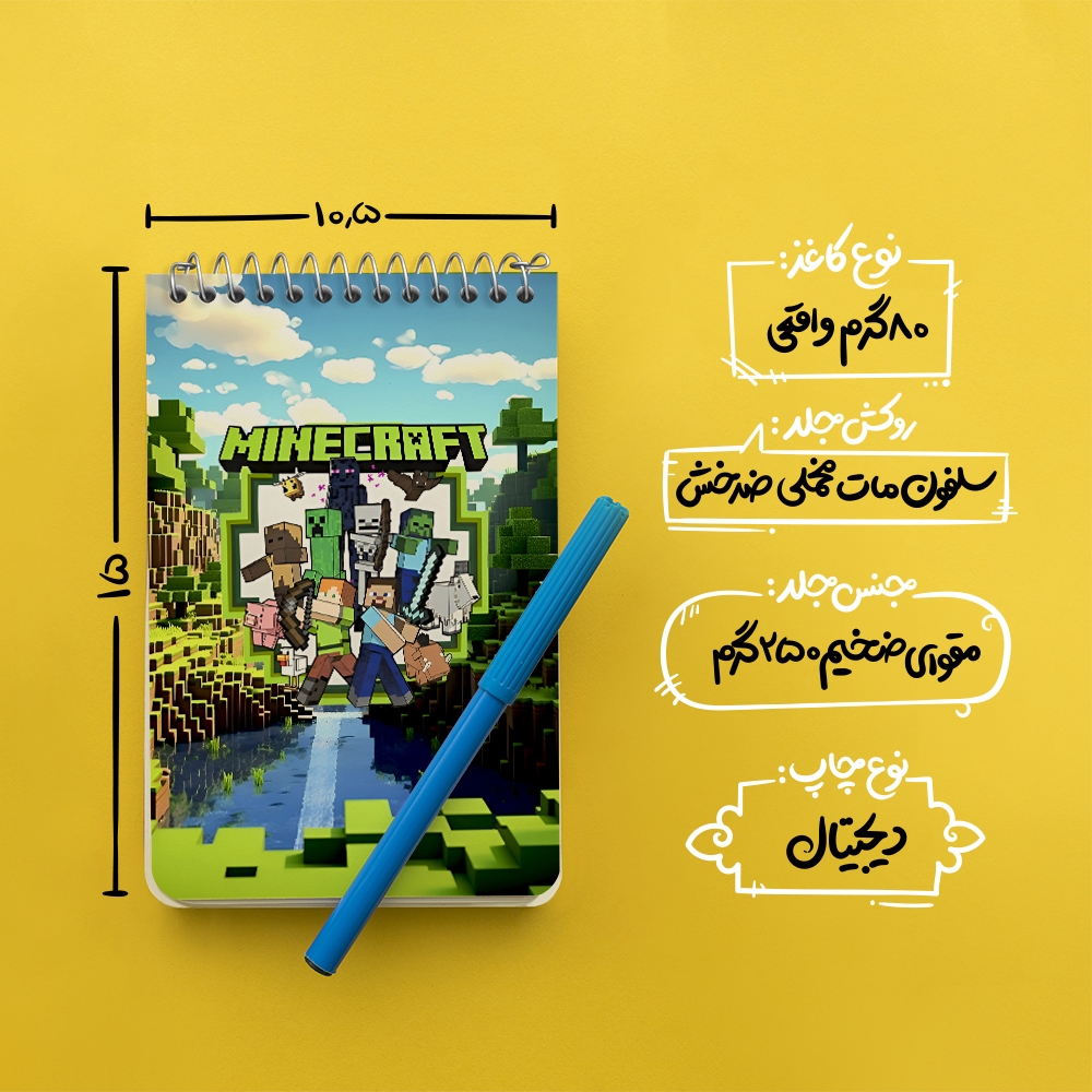 برند خندالو در زمینه تولید انواع دفاتر فانتزی و تحصیلی فعالیت میکند که به دلیل جذابیت ظاهری و طرح های متنوع طرفداران زیادی دارد. دفتر یادداشت خندالو طرح ماینکرافت (Minecraft) محصولی مناسب برای همه عاشقان لوازم التحریر است و همچنین همه کسانی که بنا به موقعیت تحصیل یا شغلشان با دفتر و نوشت افزار زیاد سر و کار دارند. در تولید دفتر یادداشت خندالو طرح ماینکرافت (Minecraft) از نوع صحافی فنر مارپیچ استفاده شده که در این نوع صحافی برگه‌ها به راحتی چرخیده و یا بیرون آورده می شوند.