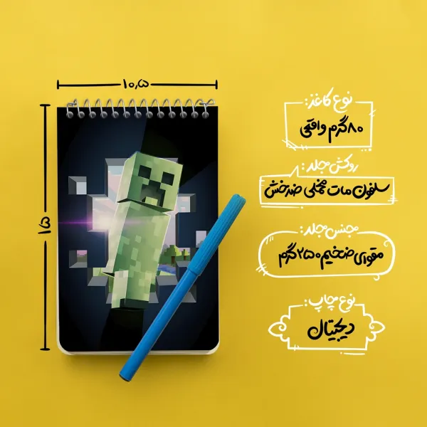 برند خندالو در زمینه تولید انواع دفاتر فانتزی و تحصیلی فعالیت میکند که به دلیل جذابیت ظاهری و طرح های متنوع طرفداران زیادی دارد. دفتر یادداشت خندالو طرح ماینکرافت (Minecraft) محصولی مناسب برای همه عاشقان لوازم التحریر است و همچنین همه کسانی که بنا به موقعیت تحصیل یا شغلشان با دفتر و نوشت افزار زیاد سر و کار دارند. در تولید دفتر یادداشت خندالو طرح ماینکرافت (Minecraft) از نوع صحافی فنر مارپیچ استفاده شده که در این نوع صحافی برگه‌ها به راحتی چرخیده و یا بیرون آورده می شوند.