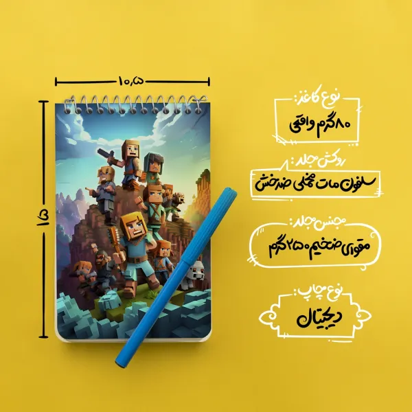 برند خندالو در زمینه تولید انواع دفاتر فانتزی و تحصیلی فعالیت میکند که به دلیل جذابیت ظاهری و طرح های متنوع طرفداران زیادی دارد. دفتر یادداشت خندالو طرح ماینکرافت (Minecraft) محصولی مناسب برای همه عاشقان لوازم التحریر است و همچنین همه کسانی که بنا به موقعیت تحصیل یا شغلشان با دفتر و نوشت افزار زیاد سر و کار دارند. در تولید دفتر یادداشت خندالو طرح ماینکرافت (Minecraft) از نوع صحافی فنر مارپیچ استفاده شده که در این نوع صحافی برگه‌ها به راحتی چرخیده و یا بیرون آورده می شوند.