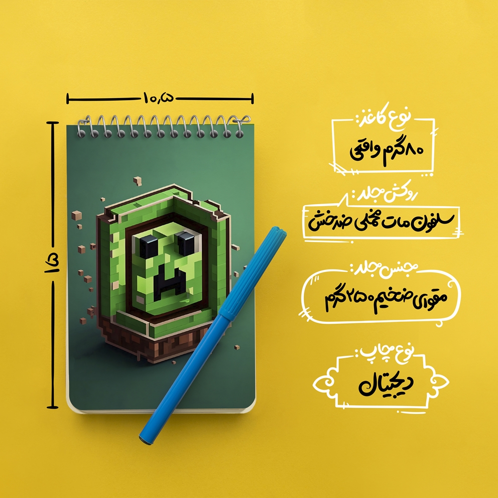 برند خندالو در زمینه تولید انواع دفاتر فانتزی و تحصیلی فعالیت میکند که به دلیل جذابیت ظاهری و طرح های متنوع طرفداران زیادی دارد. دفتر یادداشت خندالو طرح ماینکرافت (Minecraft) محصولی مناسب برای همه عاشقان لوازم التحریر است و همچنین همه کسانی که بنا به موقعیت تحصیل یا شغلشان با دفتر و نوشت افزار زیاد سر و کار دارند. در تولید دفتر یادداشت خندالو طرح ماینکرافت (Minecraft) از نوع صحافی فنر مارپیچ استفاده شده که در این نوع صحافی برگه‌ها به راحتی چرخیده و یا بیرون آورده می شوند.